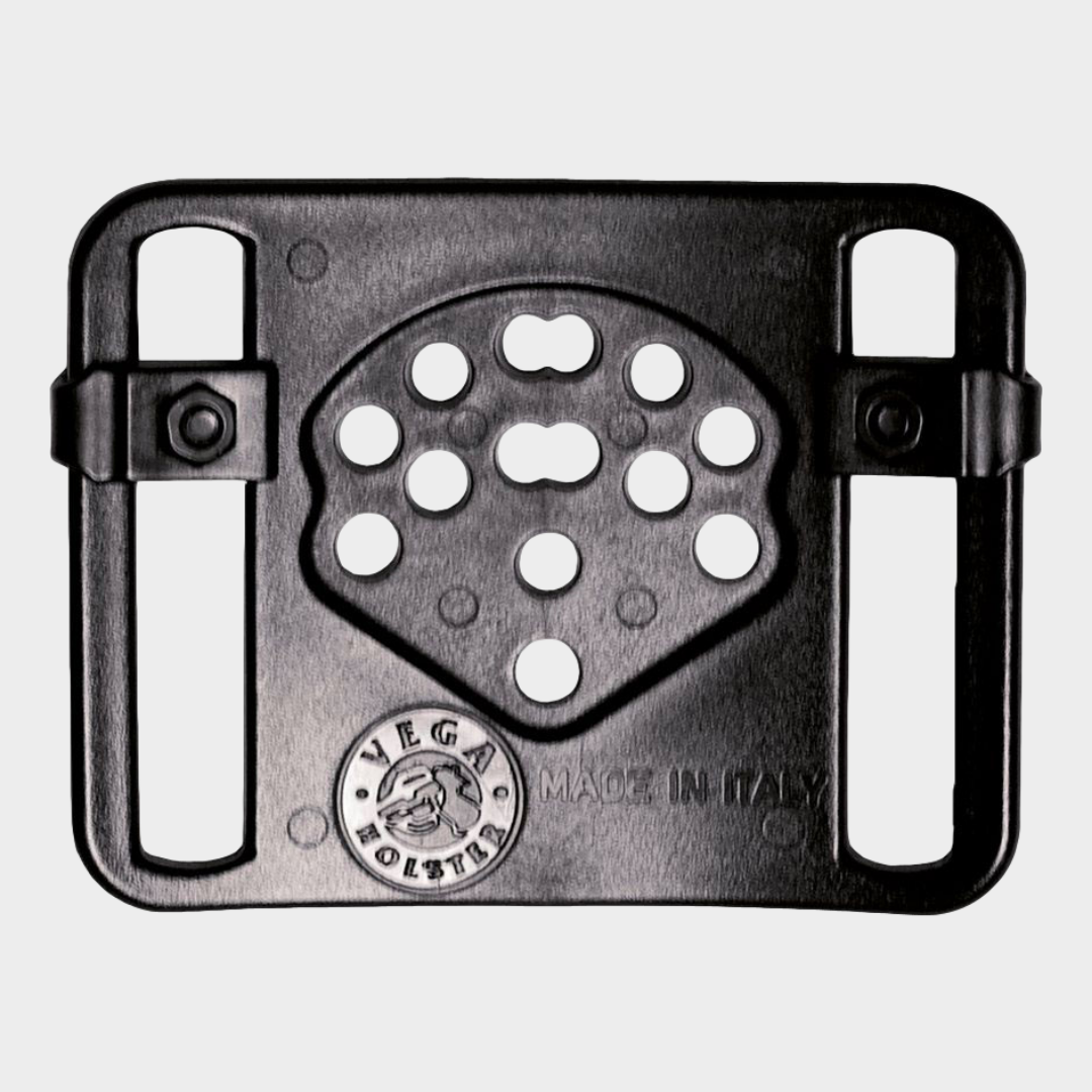 Multi-furos para ajustar a altura e inclinação com um simples ajuste de parafusos. Podendo assim escolher a posição ideal do seu coldre tendo em conta o tipo de serviço que irá exercer!