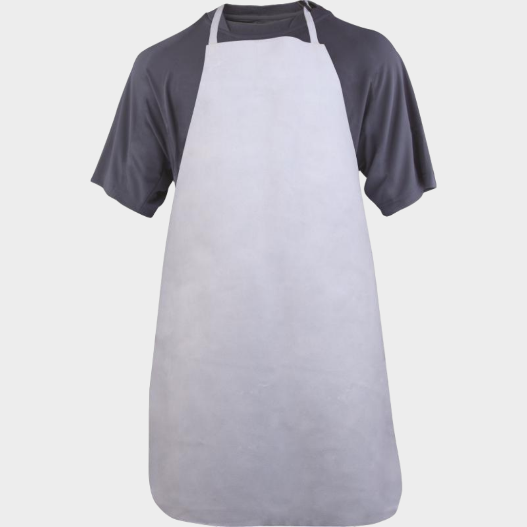 Avental de soldador com peitilho com fivela de regulação. Fivela de ajuste em croute com revestimento plastificado.