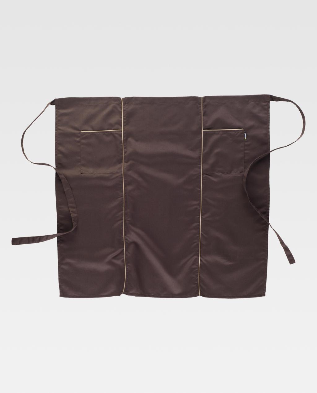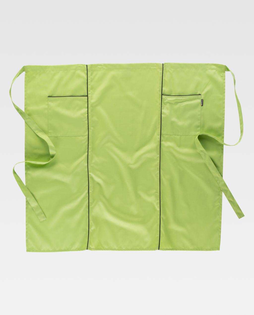 Dois bolsos laterais e cortes decorativos acabados com vivos em contraste.