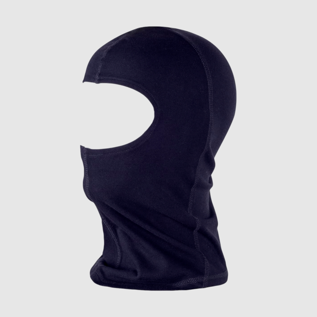 Cógula/Bataclava ignifuga com costuras protegidas para evitar roçaduras. Cor azul escuro.