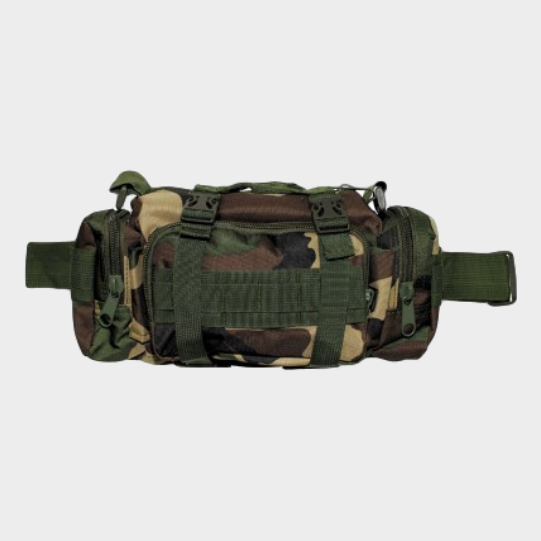 Bolsa de cintura MFH com alça ajustável e destacável,com cinto de fixação com fecho de clique na parte traseira.Grande compartimento principal com fecho e bolso de malha