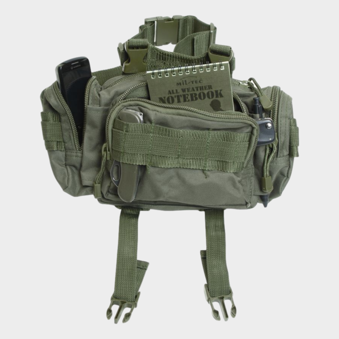 - bolsa prática para cinto com bolso principal grande e 3 bolsos com fecho