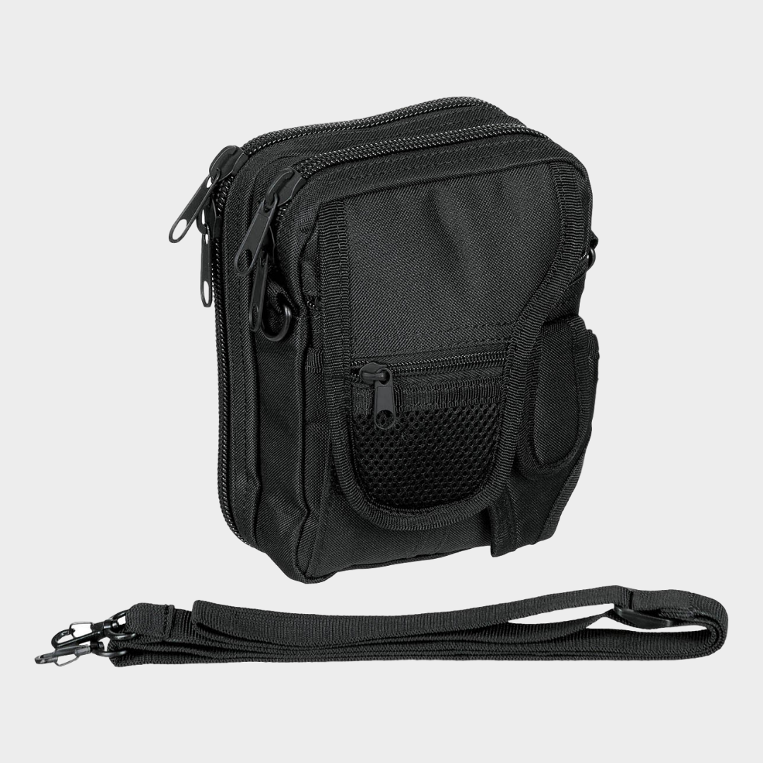 Bolsa de cintura com a possibilidade acrescentar a alça e fazer de bolsa para ombro, com a característica de ter incorporado um coldre interiror é uma excelente opção para quem procura andar mais "camuflado". Duas bolsas com fechos de duas vias com excelente arrumação e parte frontal com multi bolsas para pequenos utènsilios que fazem sempre falta a qulquer um!
