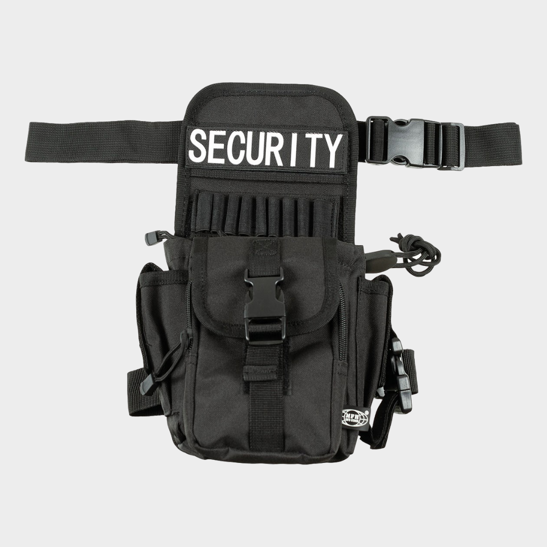 Bolsa de perna e cintura com patch "Security" removivél, com a possibilidade de adicionar os patches que pretender, inclui tambèm cartucheira removível. Bolsa principal com fecho de cordão para um closure mais seguro. Bolsas laterais e ainda uma bolsa extra frontal para adicionar equipamentos adicionais de pequeno relevo.