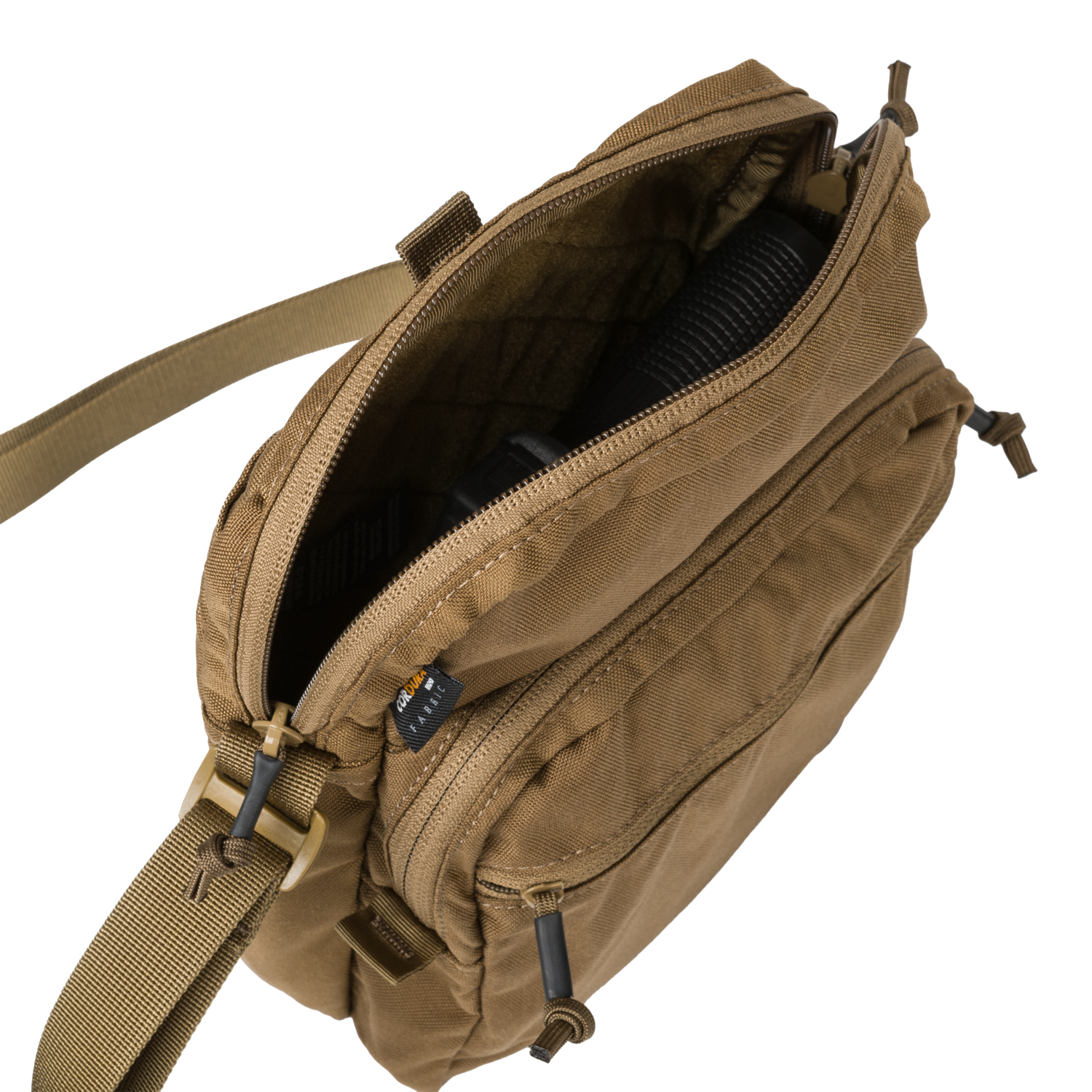 Num ambiente urbano, é importante poder transportar o máximo de equipamento possível, mas ao mesmo tempo não dar nas vistas. A bolsa de ombro compacta EDC é um ótimo exemplo desse tipo de equipamento. Feita de Cordura® 500D, nesta pequena bolsa cbae facilmente a maioria dos itens do seu dia a dia, como chaves, bloco de notas, carteira e uma pistola de tamanho normal. O interior compatível com o sistema VIS e com uma parede em velcro consegue transformar esta bolsa compatévl com o que quiser trasnportar. O organizador no bolso frontal com zíper mantém pequenos itens no lugar. Além disso, na parte de trás, há um bolso plano fechado com velcro. A bolsa está equipada com alça de ombro ajustável de 25 mm de largura.