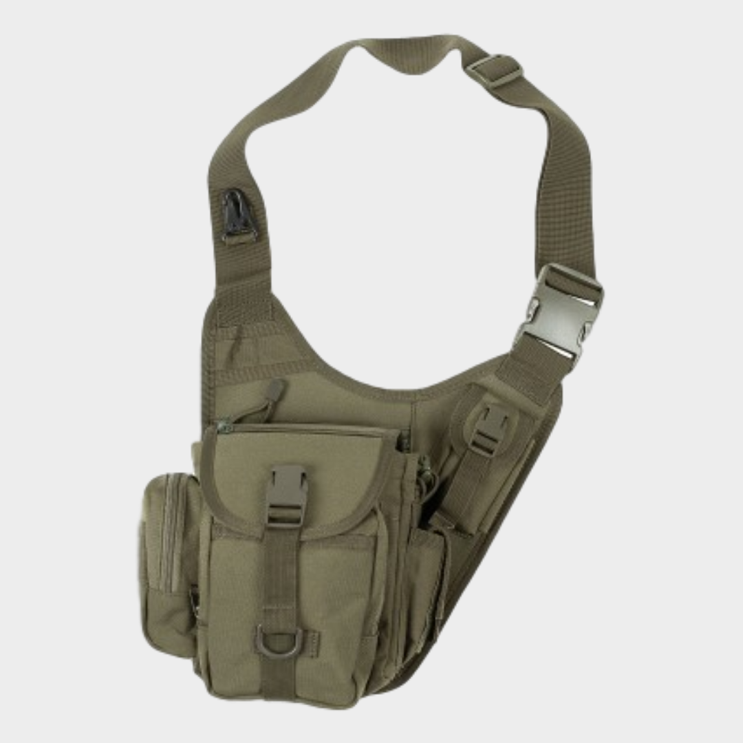 Bolsa de ombro com alça de ombro ajustável, unilateralmente destacável com velcro e mosquetão de metal para fixação do equipamento adicional. Várias bolsas para uma separação adequada do material que quiser transportar. Bolsas com fecho ou fecho de clique para uma maior segurança e fixação.