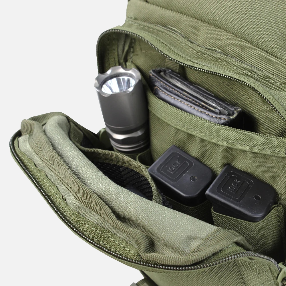 Esta bolsa EDC inclui vários compartimentos para manter armas de fogo, carregadores, ferramentas e suprimentos organizados. No compartimento oculto permite fornecer proteção adicional para itens pessoais valiosos. Use a correia MOLLE ao longo das laterais da bolsa para proteger os acessórios modulares. Com esta prática bolsa EDC da Condor Outdoor poderá transportar confortavelmente pertences pessoais importantes e outros itens essenciais quando estiver em movimento.