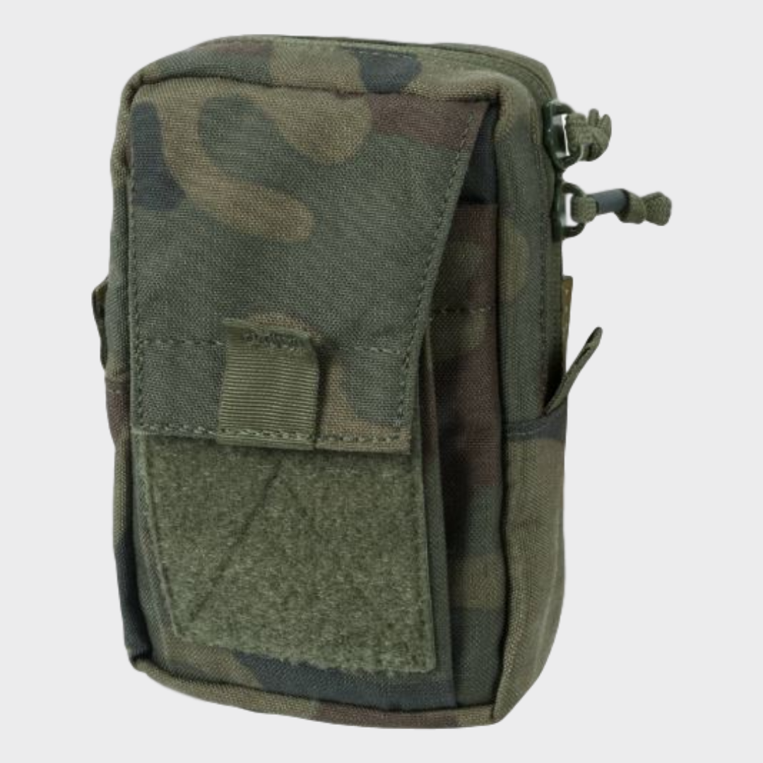 Bolsa acolchoada de tamanho médio projetada para ser usada verticalmente numa mochila com alça ou plataforma MOLLE / PALS ou para ser utilizada num cinturão. Possui espaço para smartphones, dispositivos GPS, utensílios de escrita e itens semelhantes.