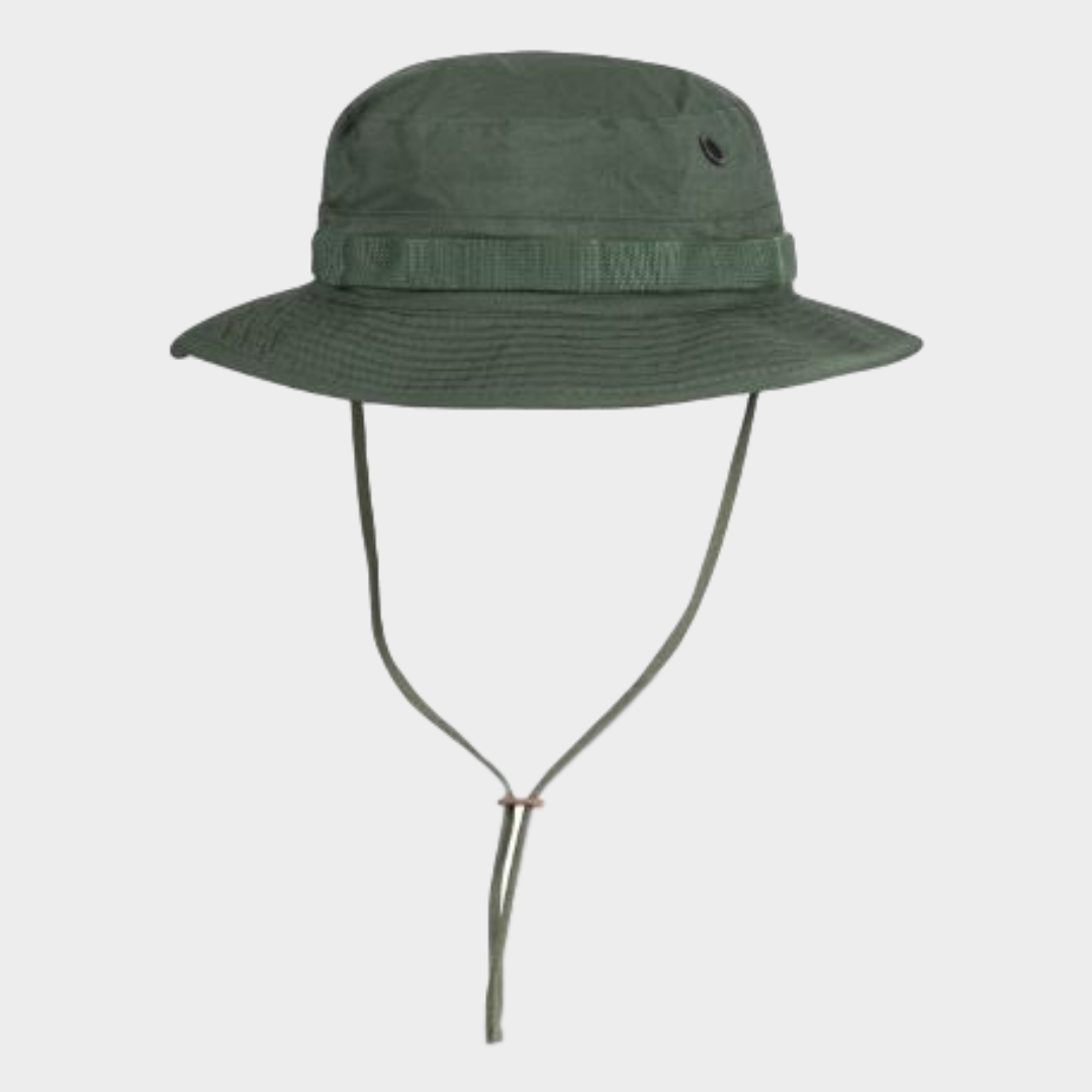 Chapéu militar tradicional com aba larga, dedicado para operações em áreas florestais e desérticas. Fornece proteção eficaz contra sol e chuva e também possui uma cobertura de pescoço destacável.