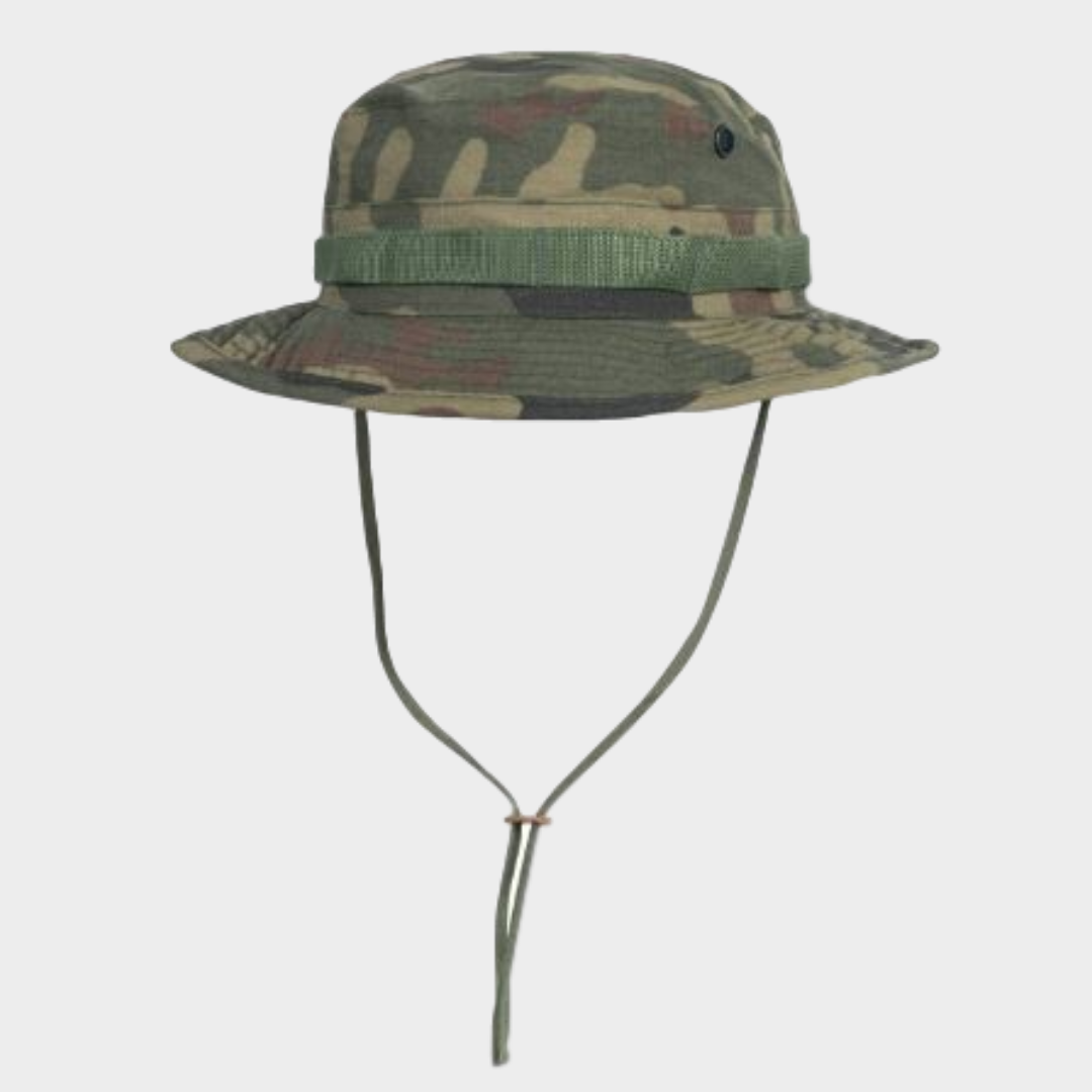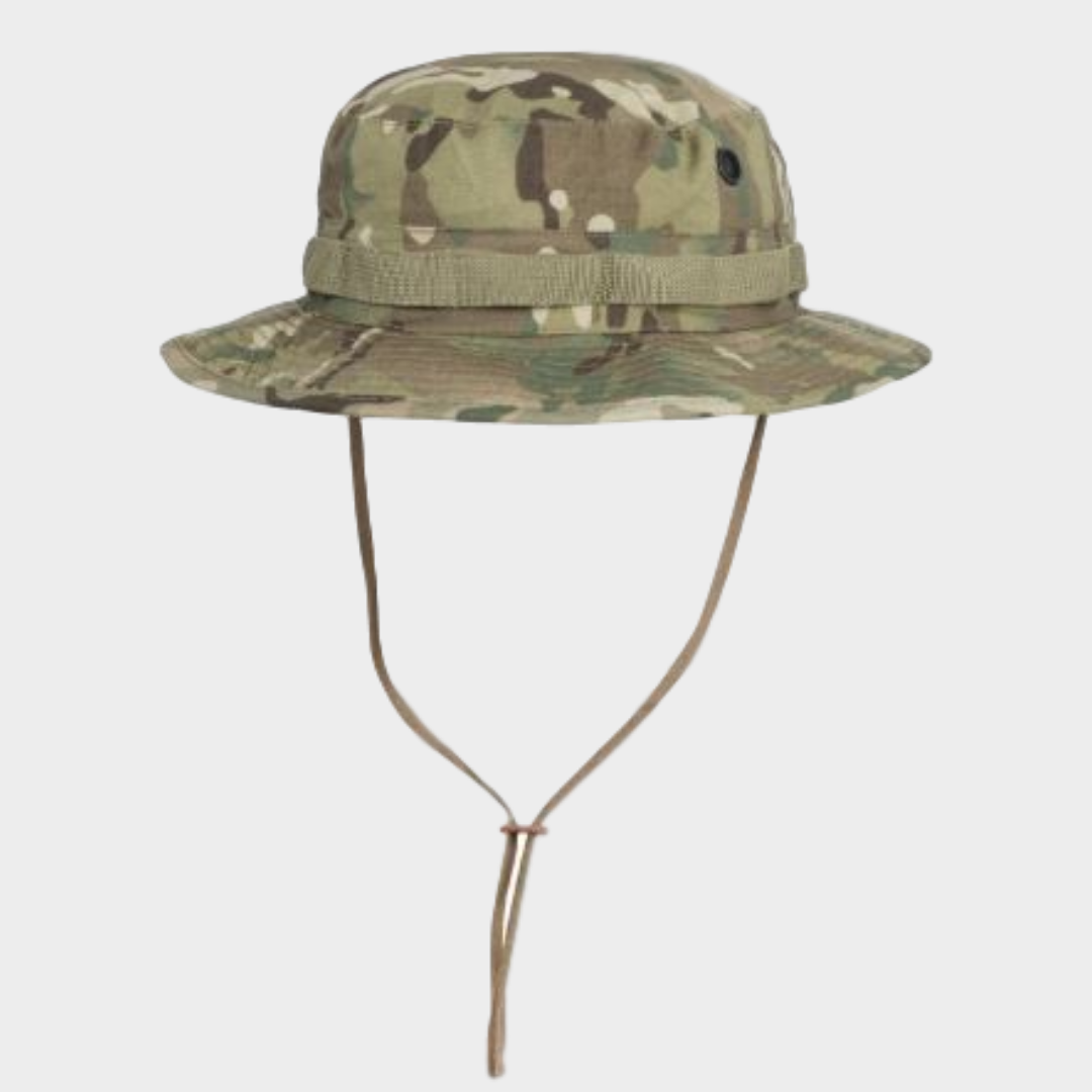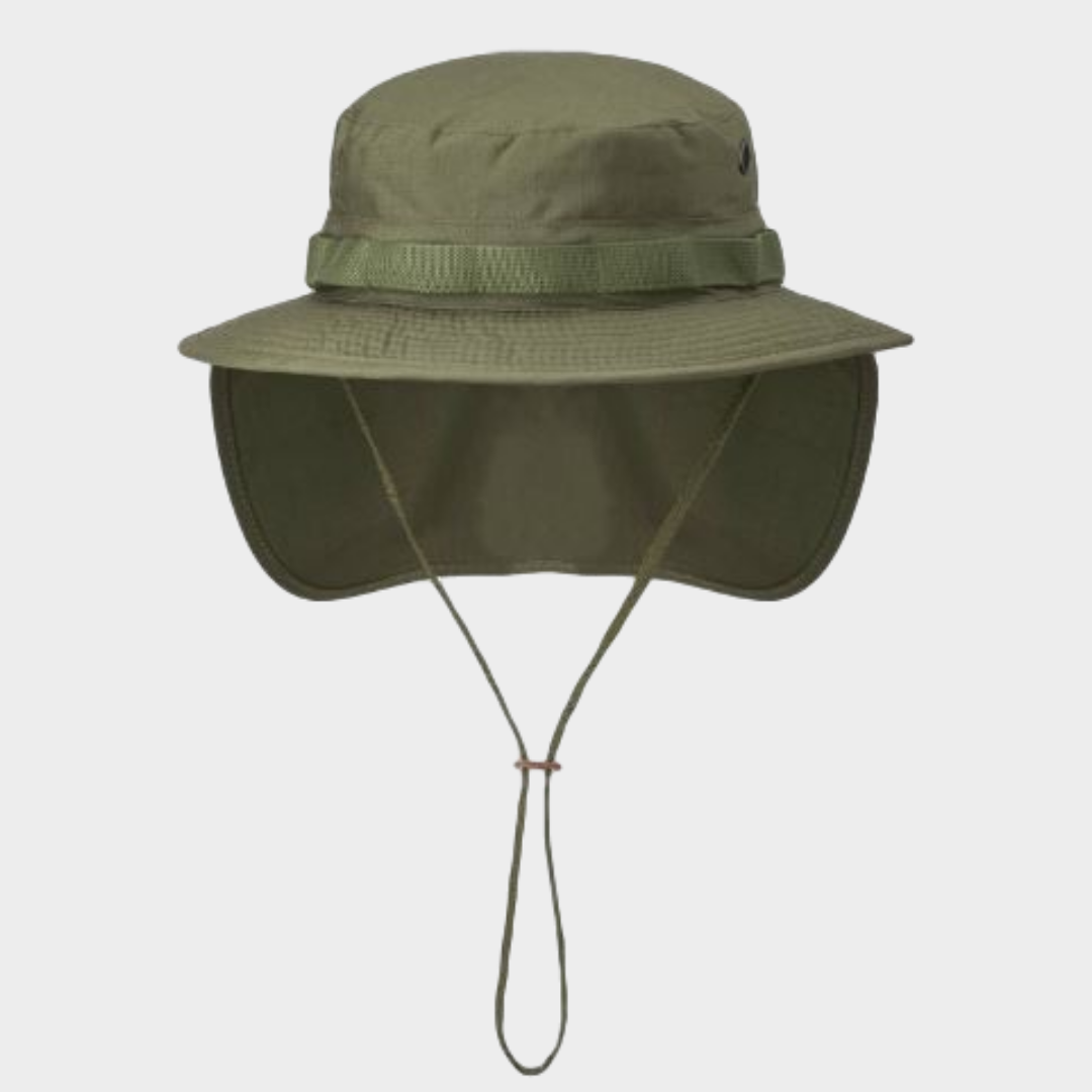 Chapéu militar tradicional com aba larga, dedicado para operações em áreas florestais e desérticas. Fornece proteção eficaz contra sol e chuva e também possui uma cobertura de pescoço destacável.