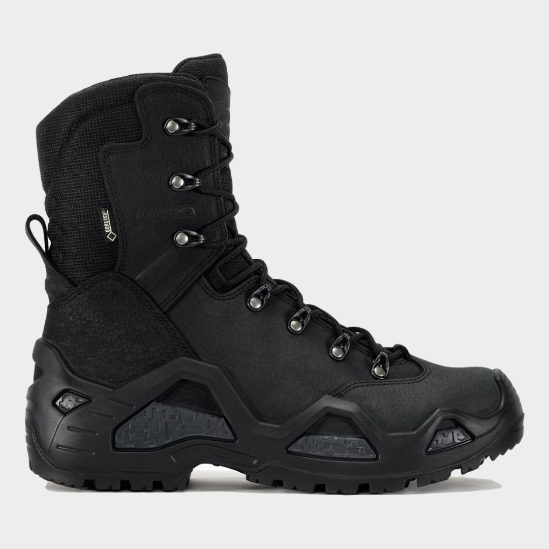Uma versão de couro nobuck do popular design Z-8 GTX, esta é uma bota multifuncional robusta e de eixo maior projetada para missões exigentes enquanto carrega pesos em terrenos variados. Combina o conforto de uma boa bota de caminhada com o apoio e a proteção de uma bota táctica Nossa entressola DuraPU® injetada fornece suporte e a construção extra-estável PU MONOWRAP® fornece proteção contra abrasão por corda durante o rapel. Durável à prova d'água / respirável.