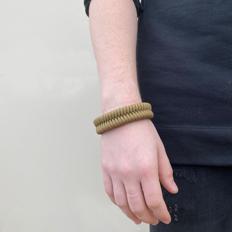 Thus, a person wearing a paracord bracelet on his wrist always has a several meter supply of cord at hand for all occasions.