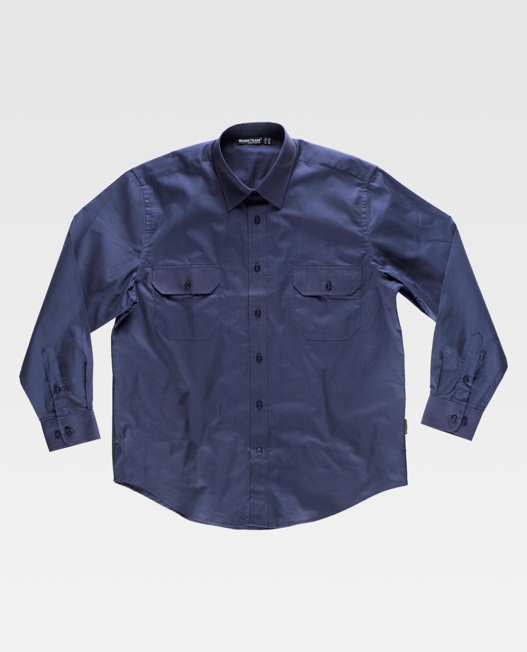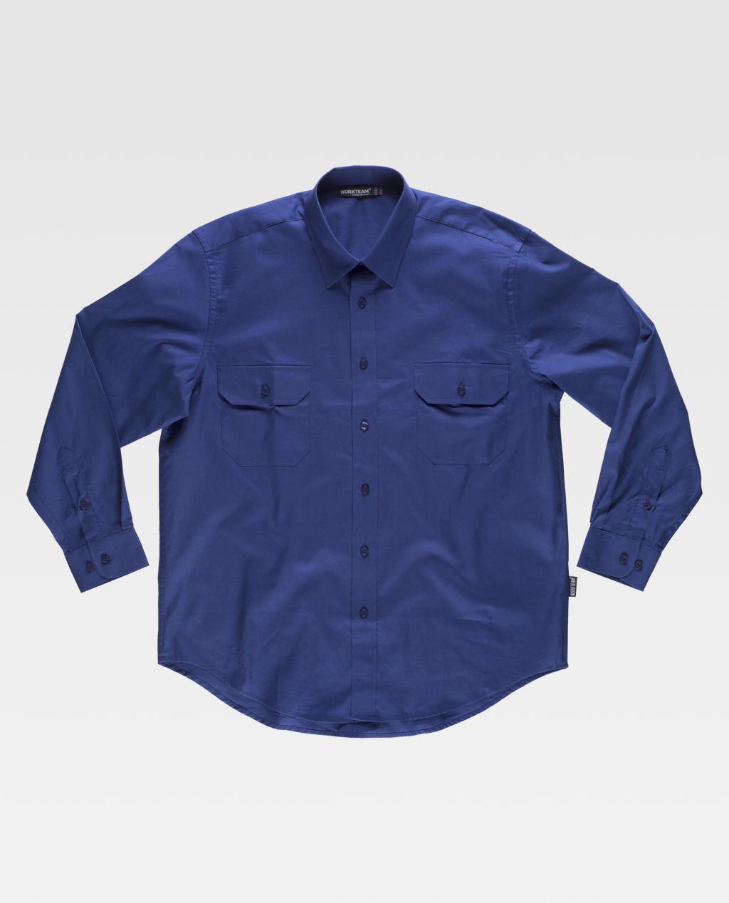 Dois bolsos de chapa no peito com lapela de botão. Manga comprida com punho de botão.