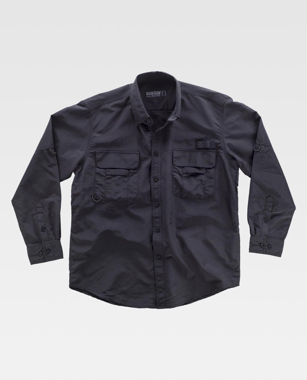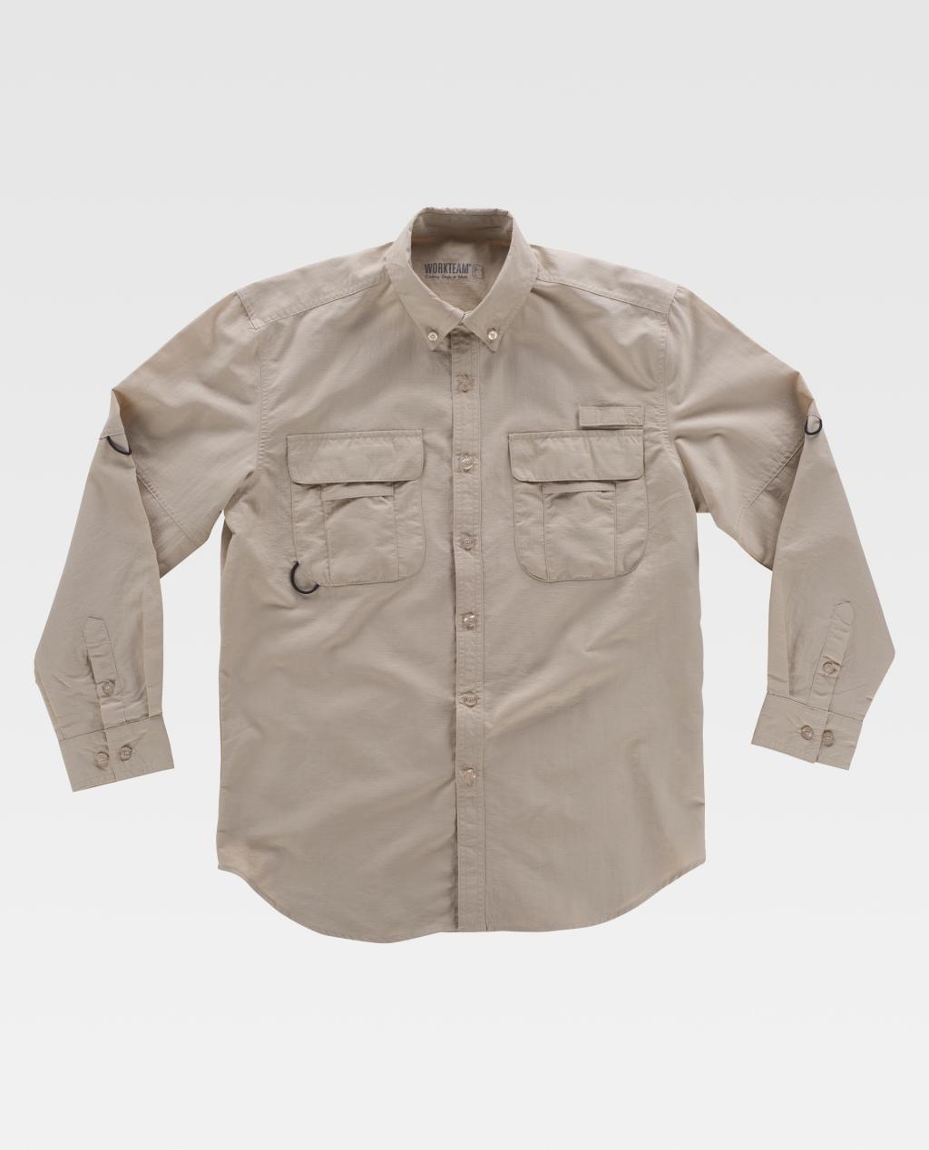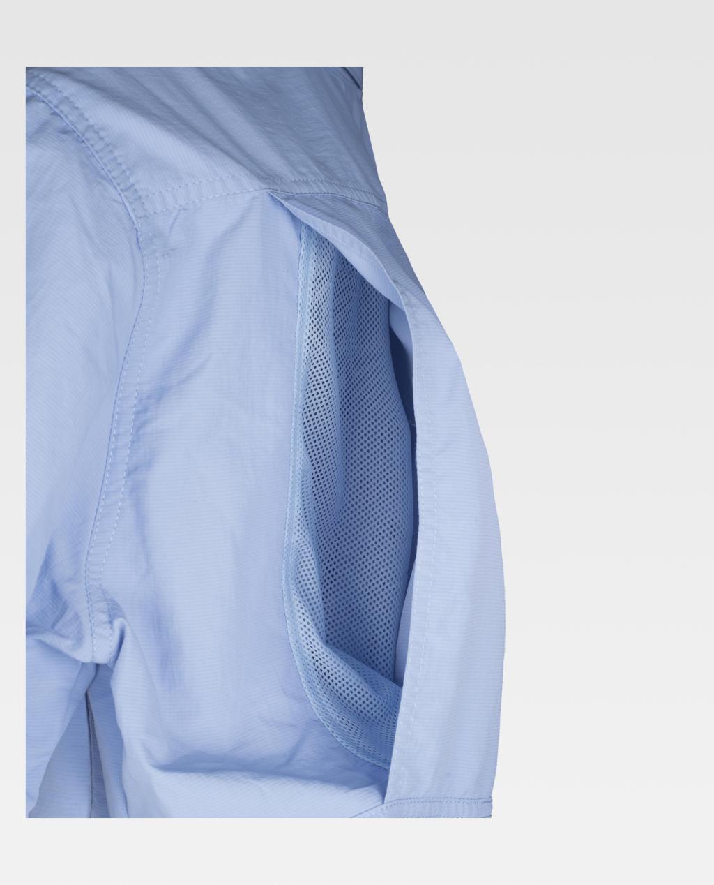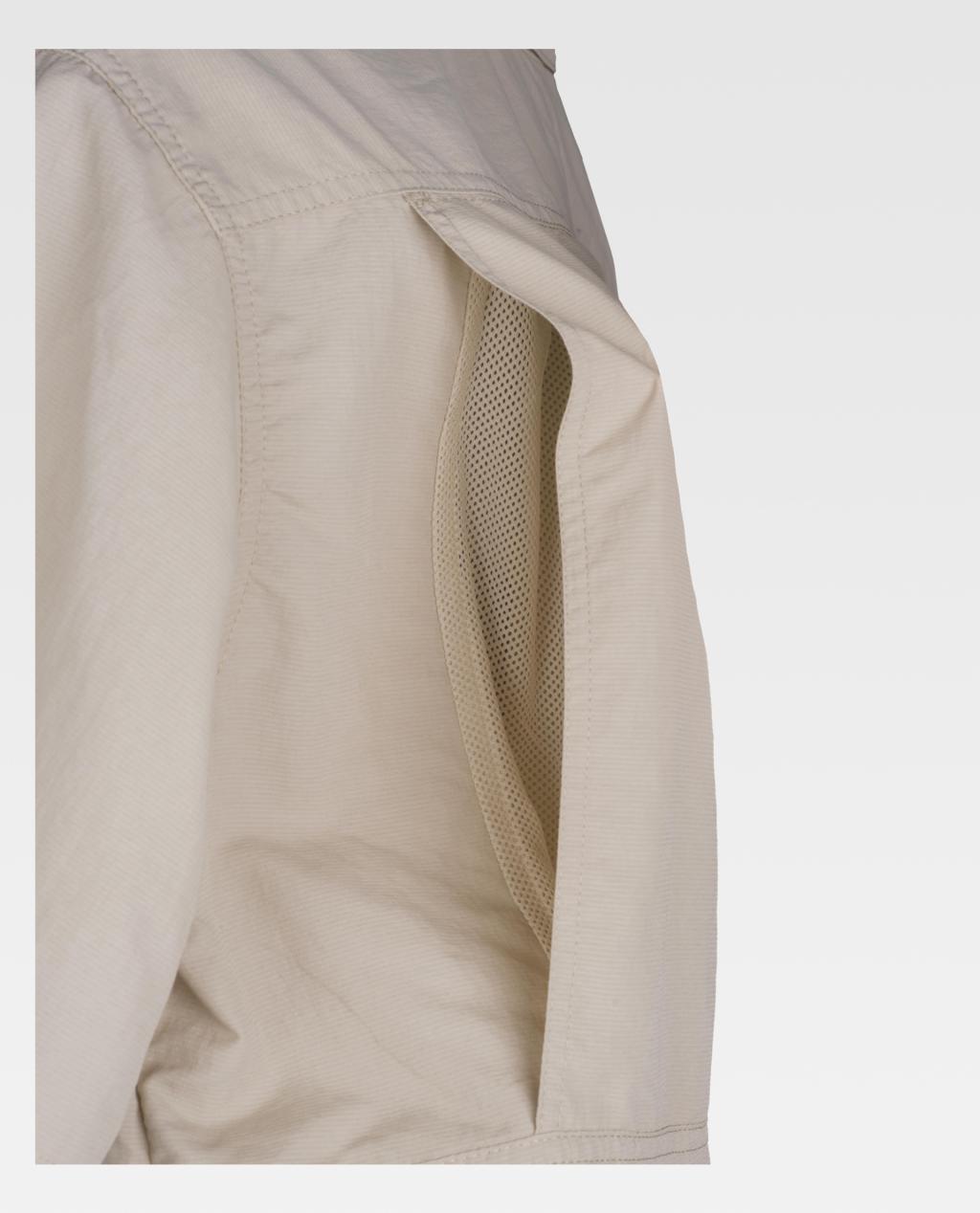 Camisa safari com abertura traseira e rede interior para regular a transpiração.