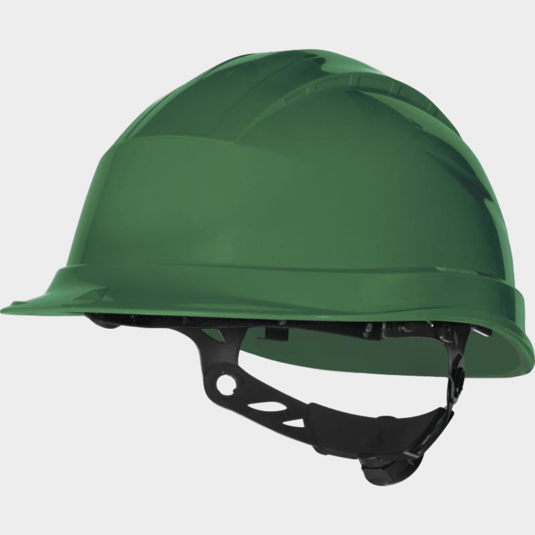 Capacete de estaleiro em polipropileno (PP) alta resistência tratamento anti-UV. Coifa poliamida : 3 bandas têxteis com 8 pontos de fixação. Banda de suor em esponja. Sistema inovador de aperto Rotor : perímetro da cabeça de 53 a 63 cm. 2 posições possíveis do perímetro da cabeça (alta / baixa) para um maior conforto. Isolamento eléctrico até 1000 VAC ou 1500VCC.