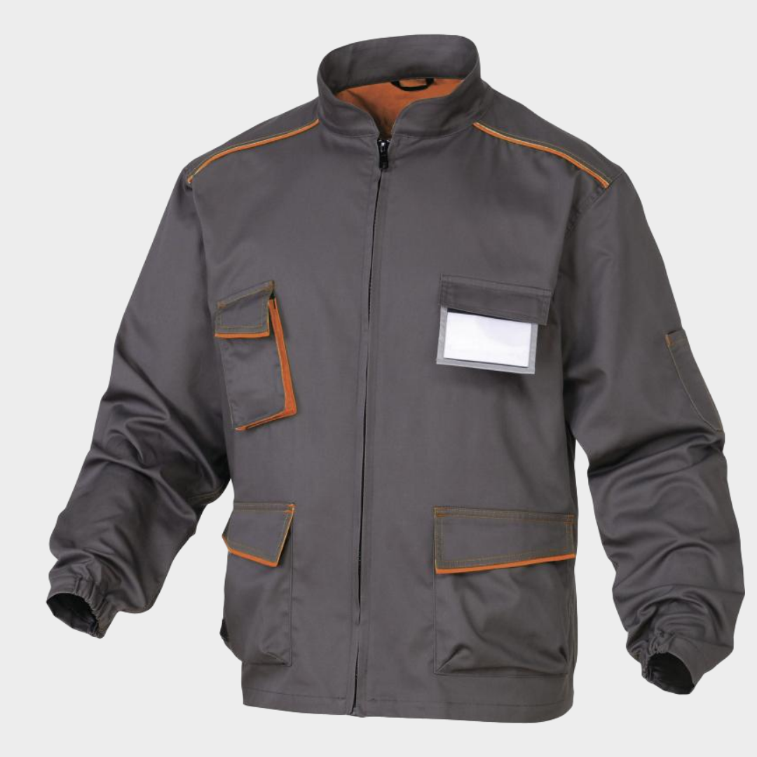 Casaco industrial com fechos e punhos elásticos. Com 4 bolsos e um deles com placa identificatória