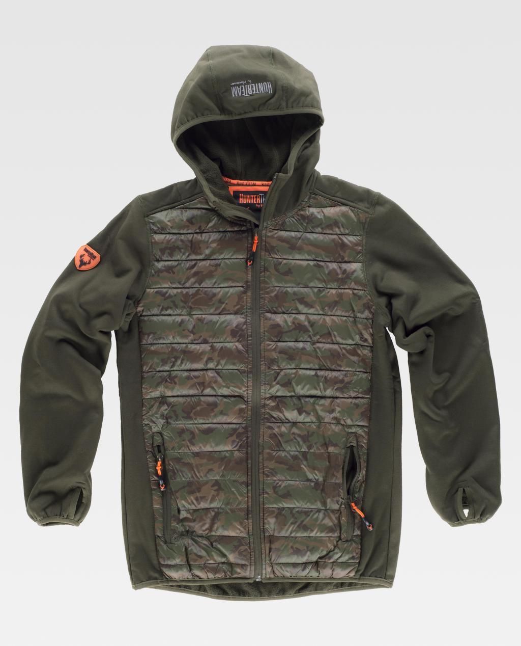 Casaco Workshell combinado com tecido acolchoado com desenho de camuflagem.