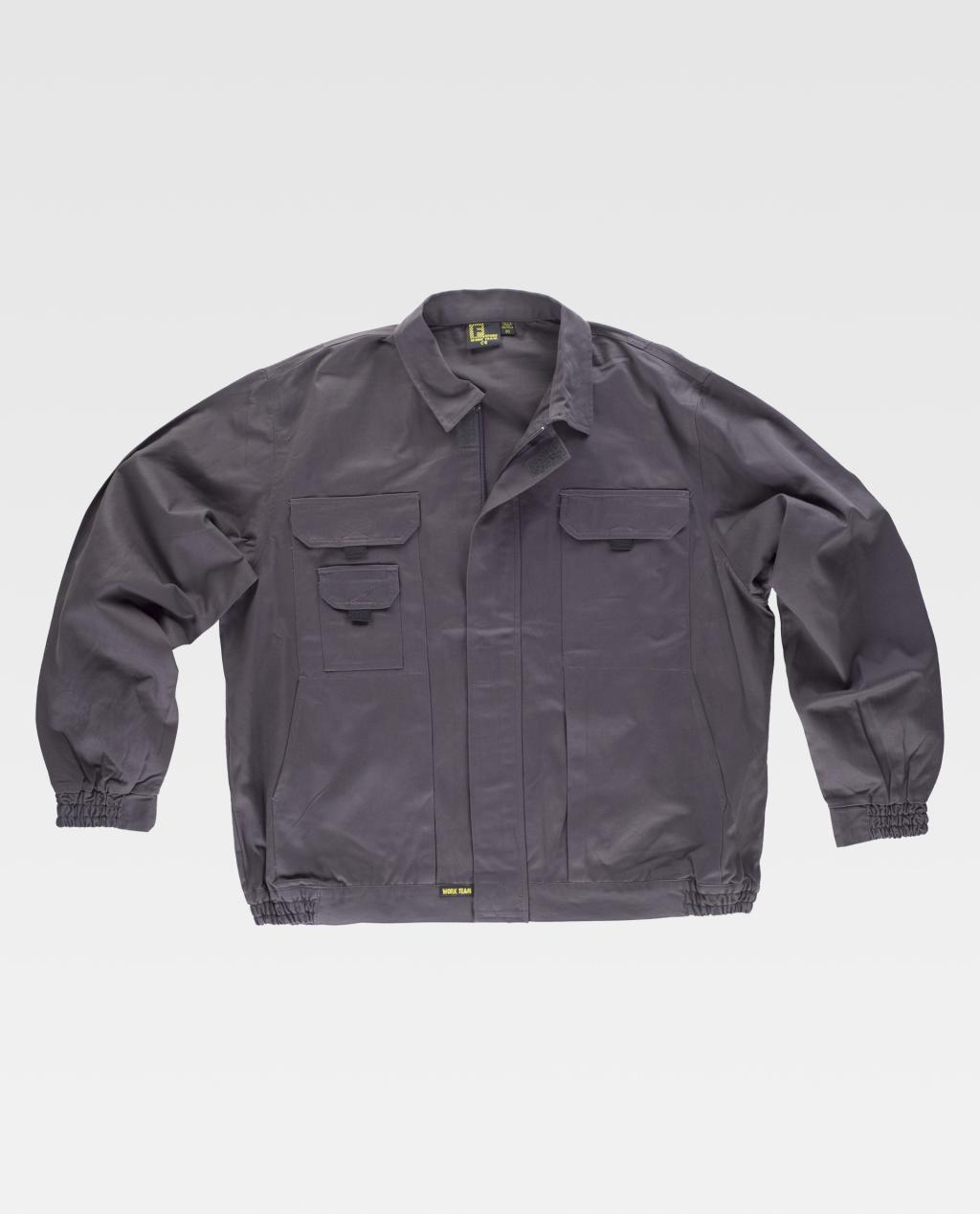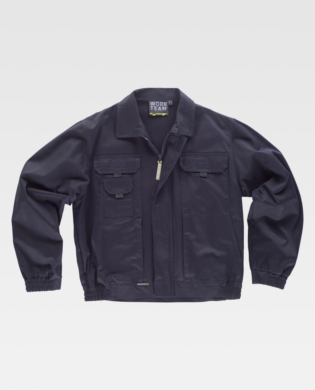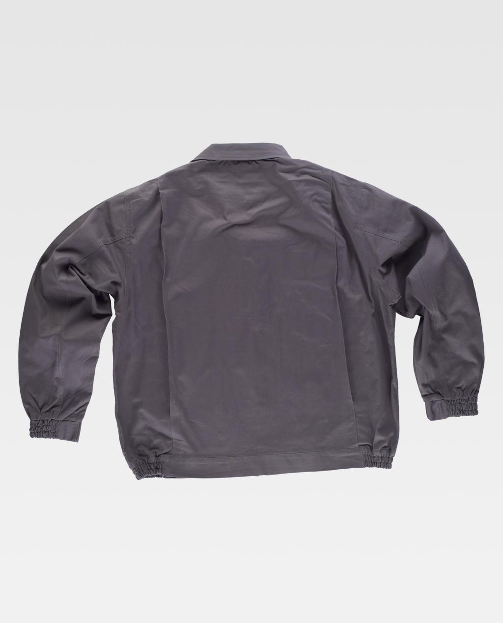 Gola tipo camiseiro e fecho de correr de nylon oculto por aba com velcro.