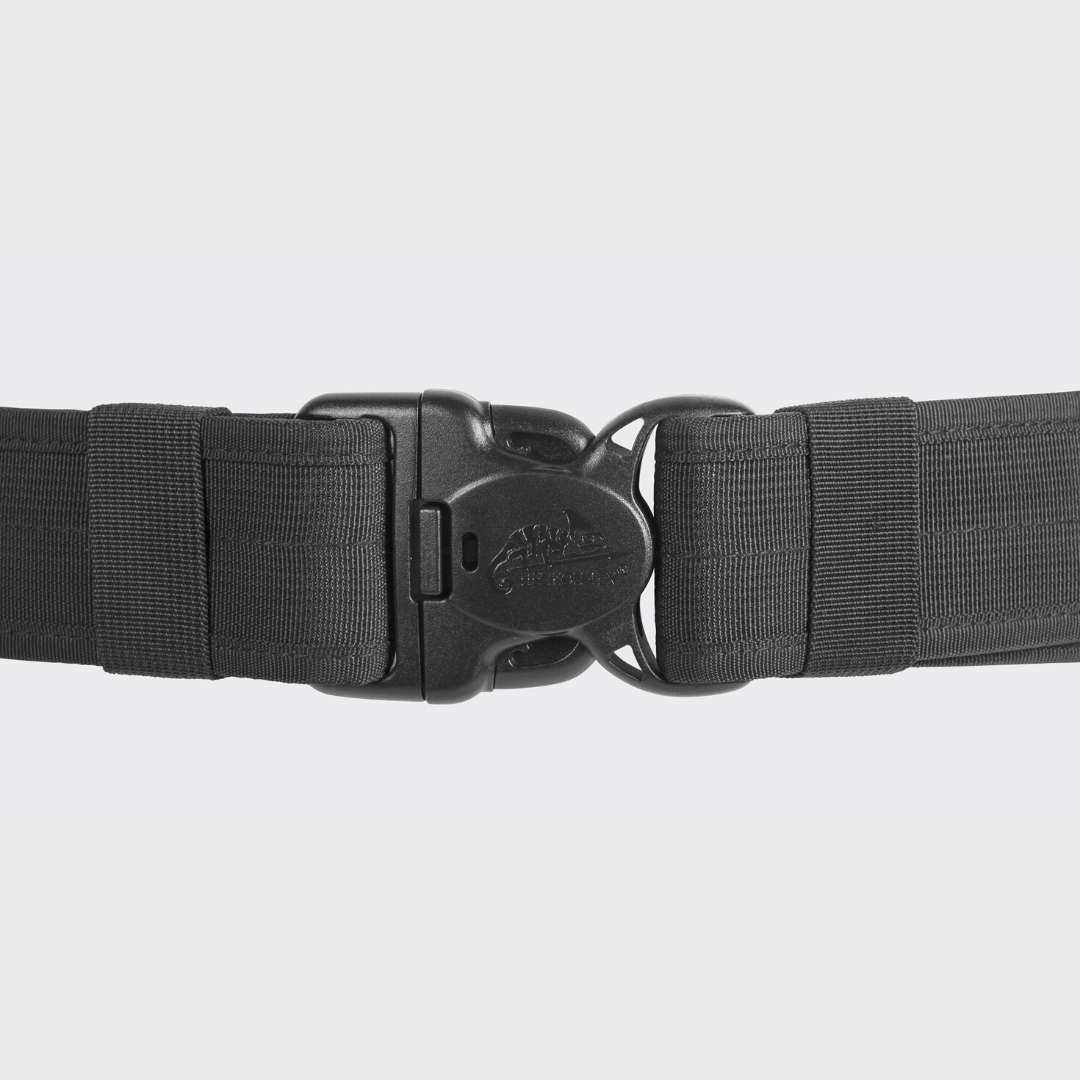 Cinto tático externo de 50 mm de largura, projetado para transportar equipamentos básicos para operadores de Mil / LE, como bolsas para munoções / bastões / lanternas / rádios e coldres para armas. A fivela pode ser libertada rapidamente, mas nunca por acidente - graças a um sistema especial da Duraflex® de três pontos. O lado interno do cinturão possui um sistema de células que estabiliza adicionalmente as bolsas do compartimento e impede que elas se desloquem ao longo da correia. Vem com cinto interno simples para estabilizar o sistema de cinto de serviço principal.