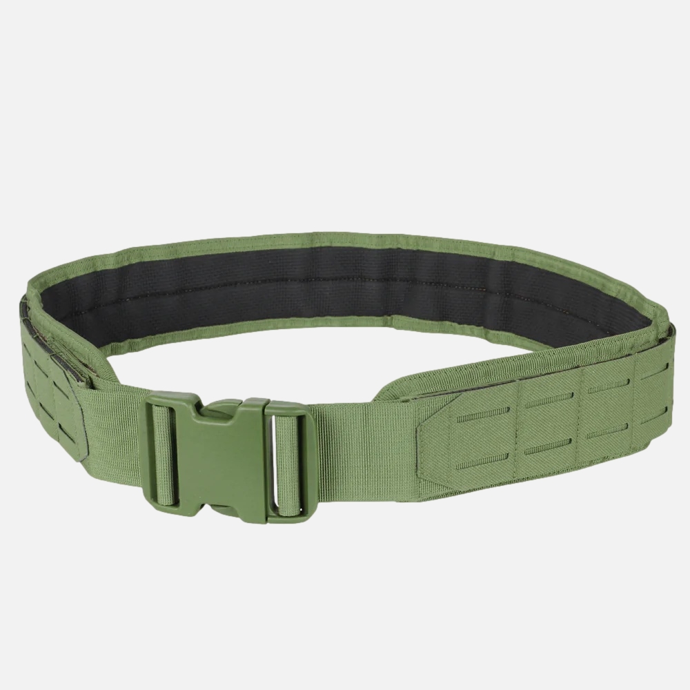 O exterior do cinto de armas apresenta nosso material LCS proprietário com slots MOLLE não tradicionais para estabilizar os acessórios e reduzir o peso. Este cinto versátil pode ser usado em conjunto com um cinto interno ou como um cinto autônomo para atender às suas necessidades em cada expedição ou missão. Possui uma almofada antiderrapante interna removível para mantê-lo confortavelmente situado em sua cintura. Como o Condor LCS Cobra Gun Belt, ele oferece correias de duas polegadas de largura por toda parte.