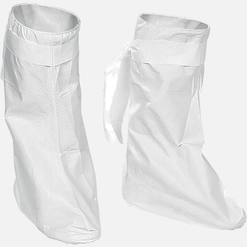 Cobre botas com tecido não tecido Deltatek 5000 microporoso laminado. Elástico e fitas de aperto na parte superior para uma fácil utilização e fixação. Cada unidade corresponde a um saco de 10 pares.