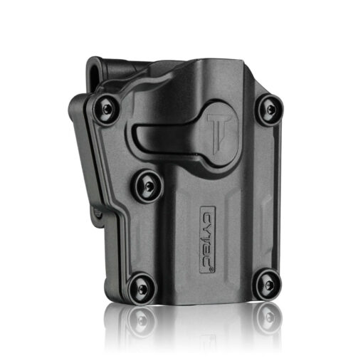 Mega-Fit Holster é um coldre universal e altamente compatível para desbloqueio do dedo indicador, programado para a mão esquerda.