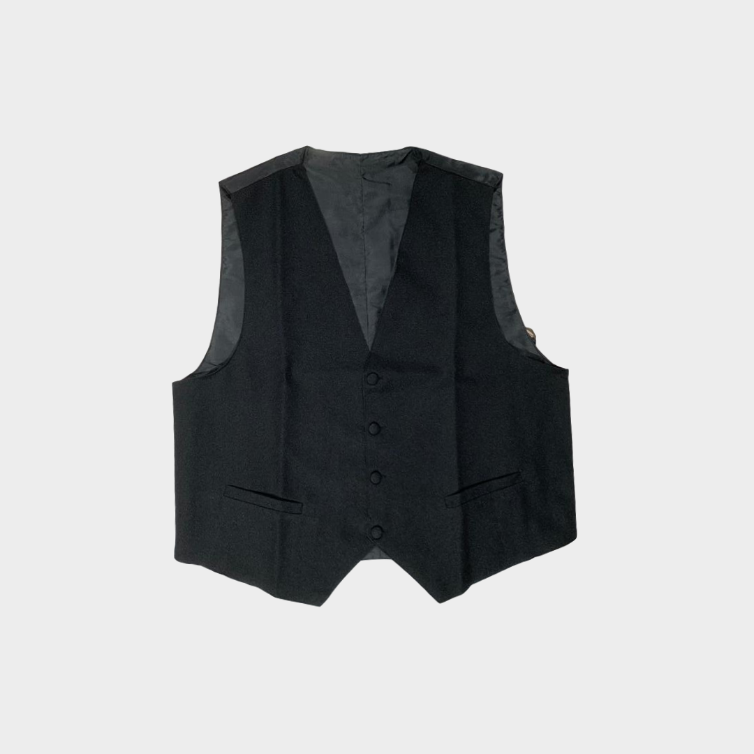 Colete com corte clássico. Decote em bico e fecho central simples com cinco botões do mesmo tom. Dois bolsos laterais semi-embutidos. Abertura nas costas. Acolchoado. A sua composição em 100% poliéster garante a estabilidade dimensional do vestuário.