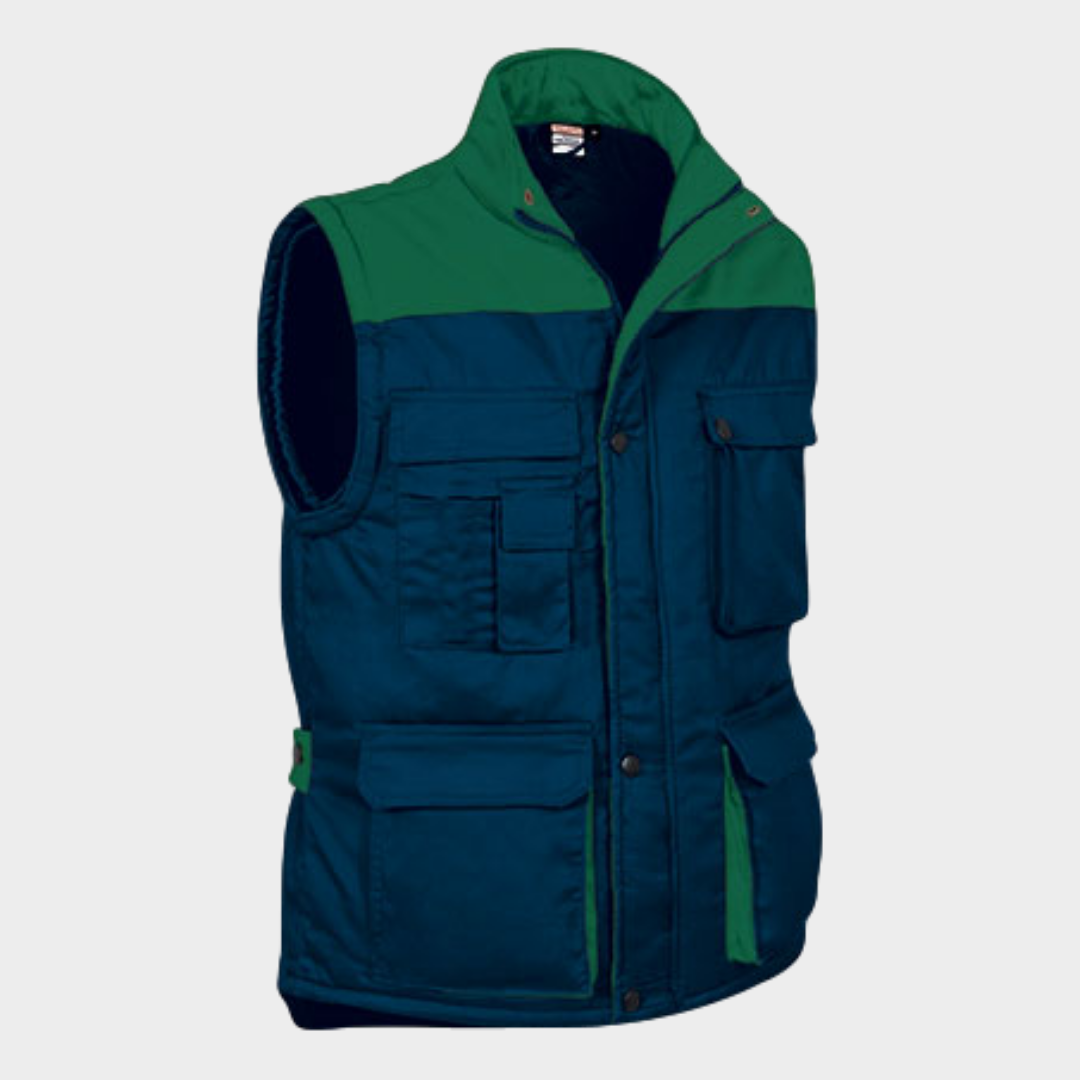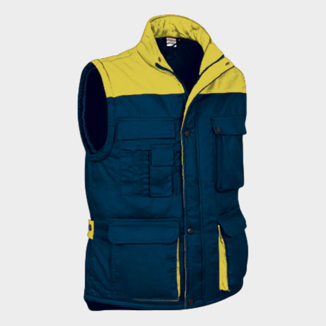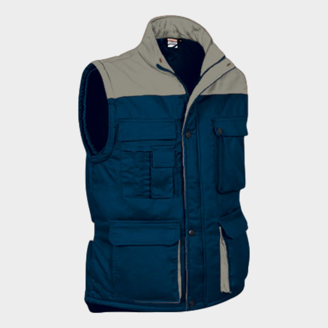 Colete Thunder multi bolsos, bicolor com fecho e carcela de molas para um ajuste mais simplificado.