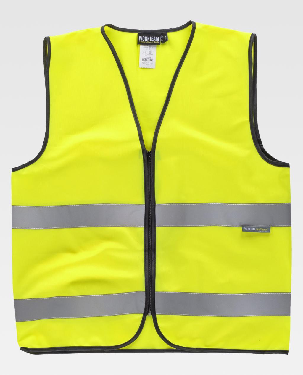 Colete de alta visibilidade com faixas refletoras.
