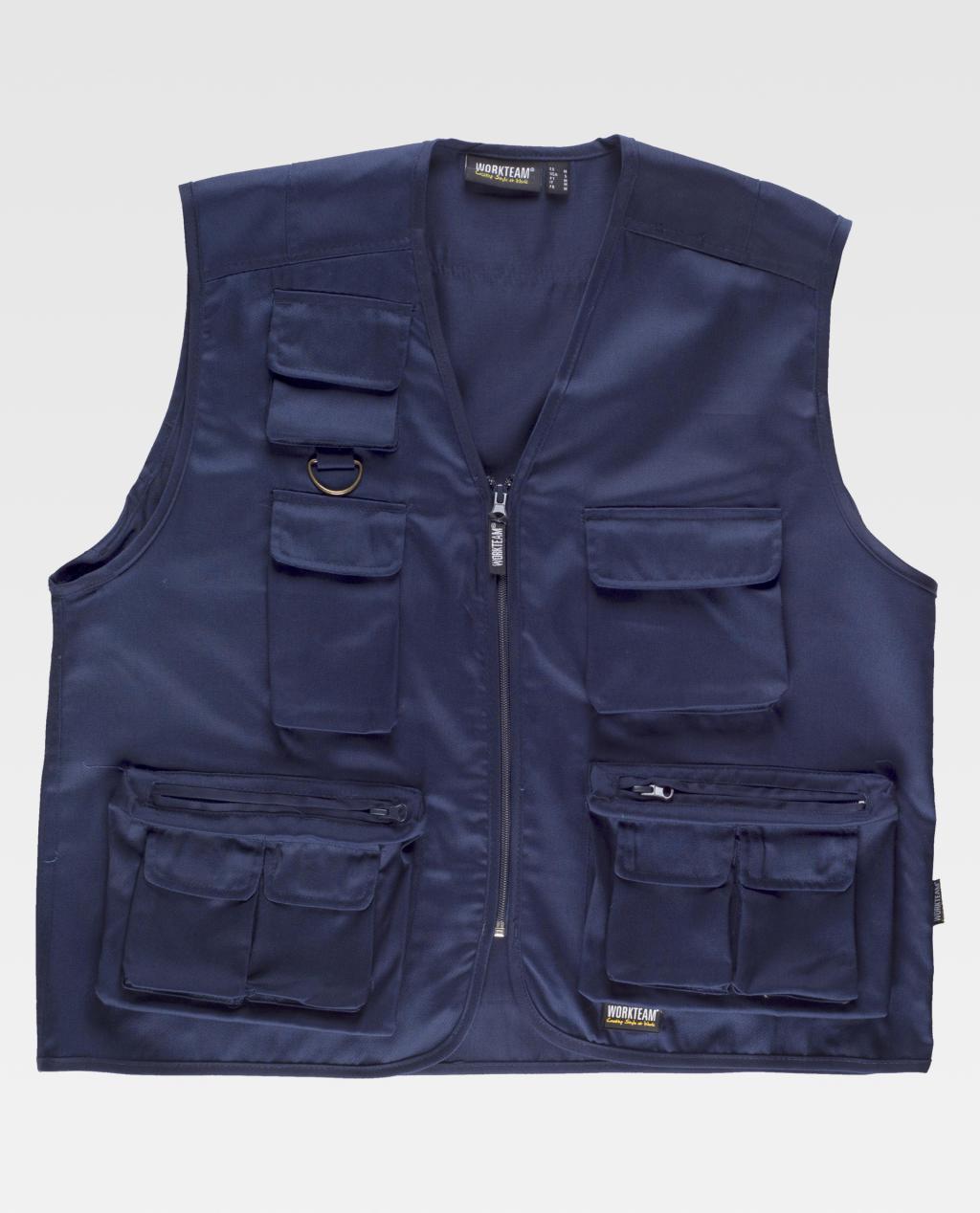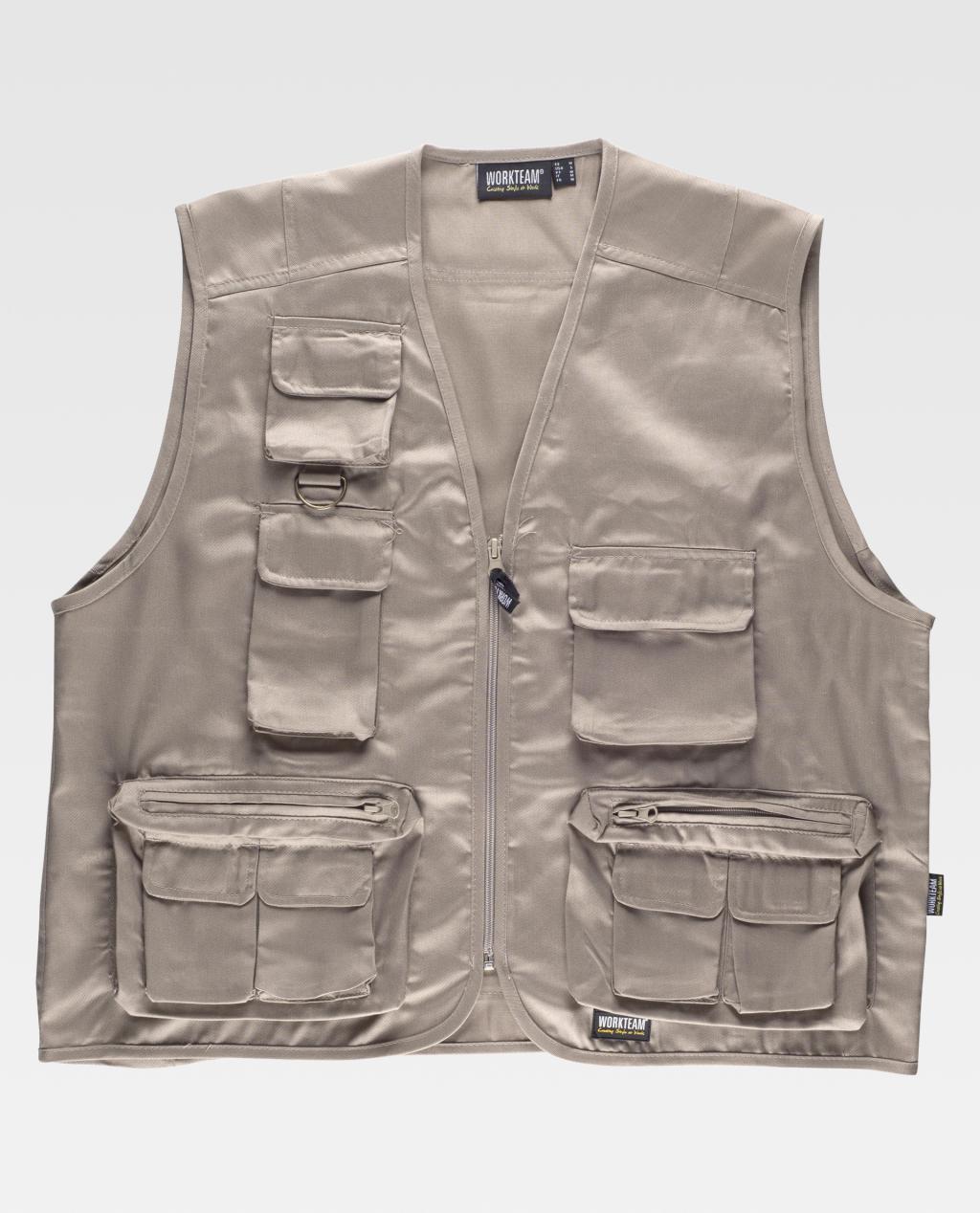 Colete tipo safari com fecho de correr de nylon.