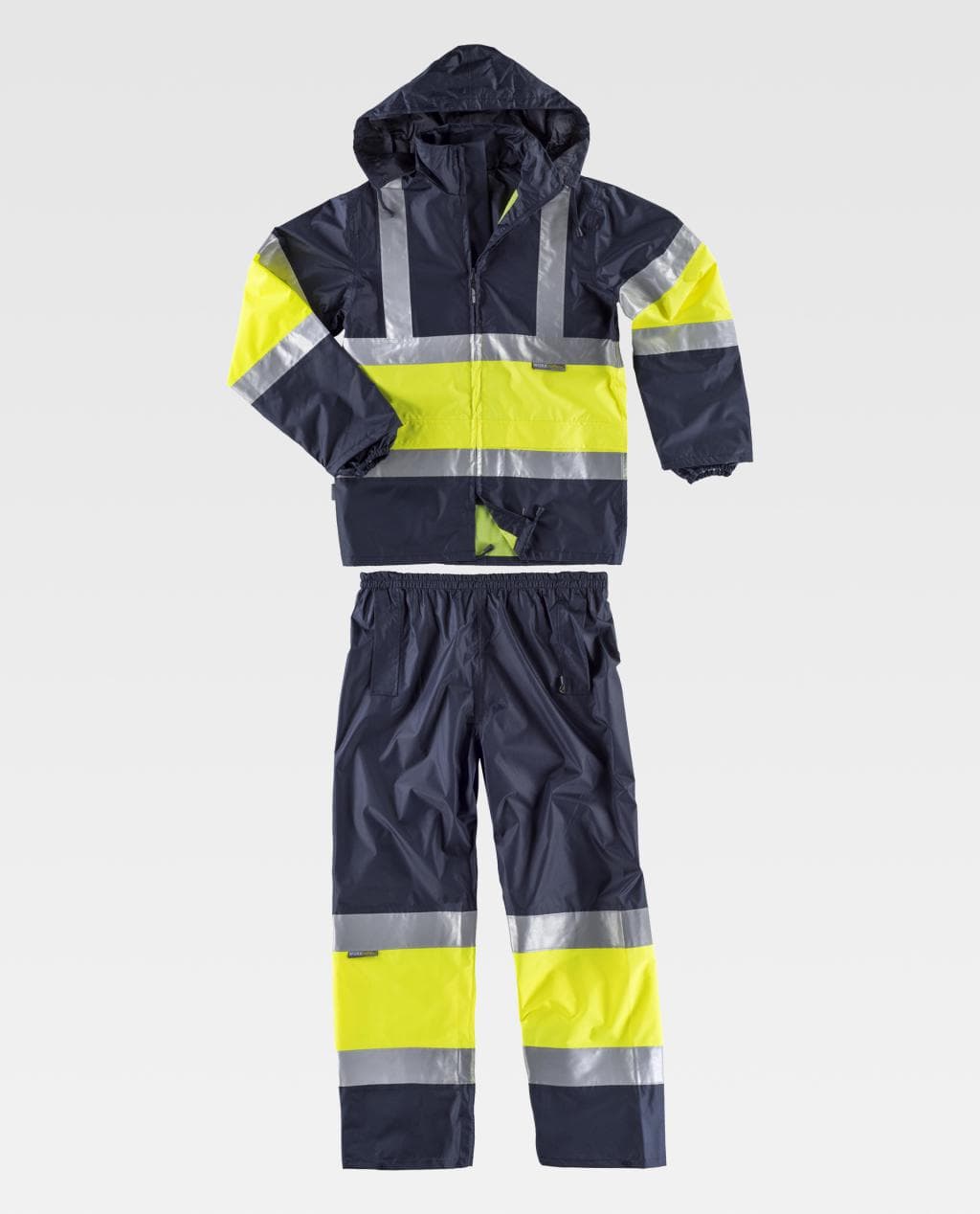 Fato impermeável, de alta visibilidade com faixas refletoras.