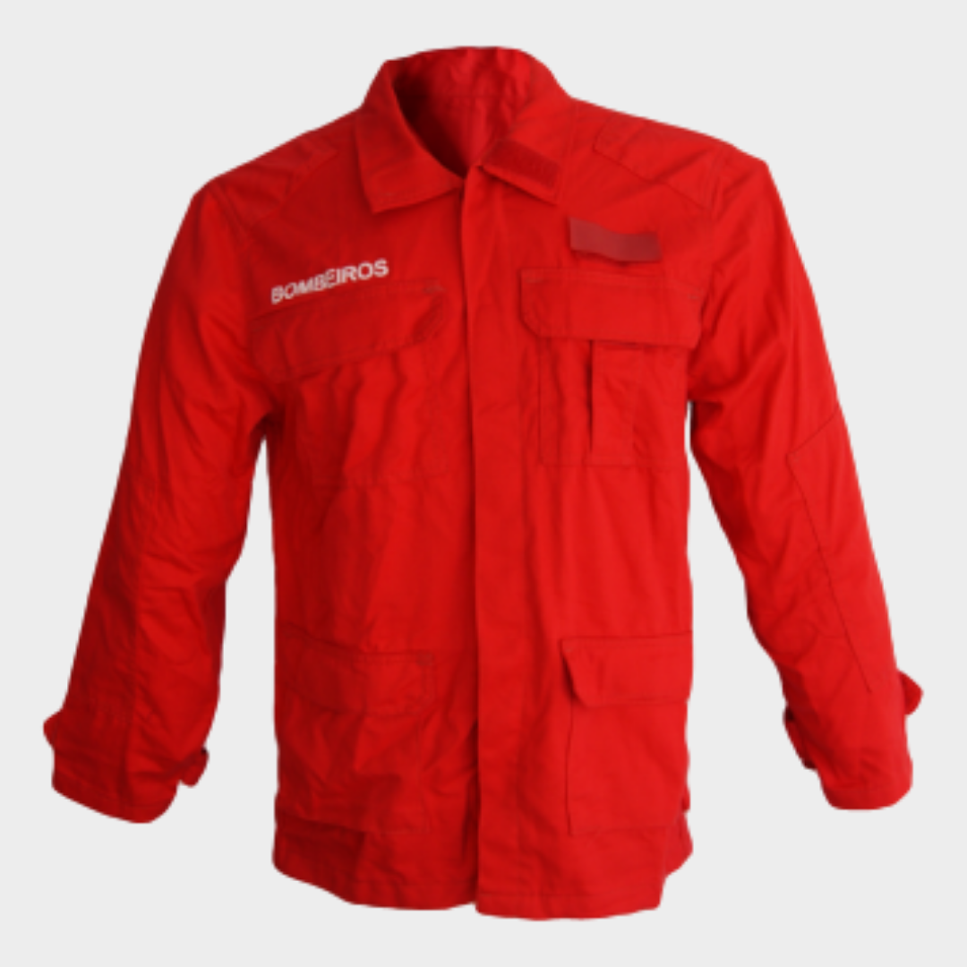 Dolmem Vermelho Bombeiro farda nº3 em 100%Algodão de alta gramagem. Com quatro bolsos, dois superiores junto ao peito e outros dois inferiores junto á cintura