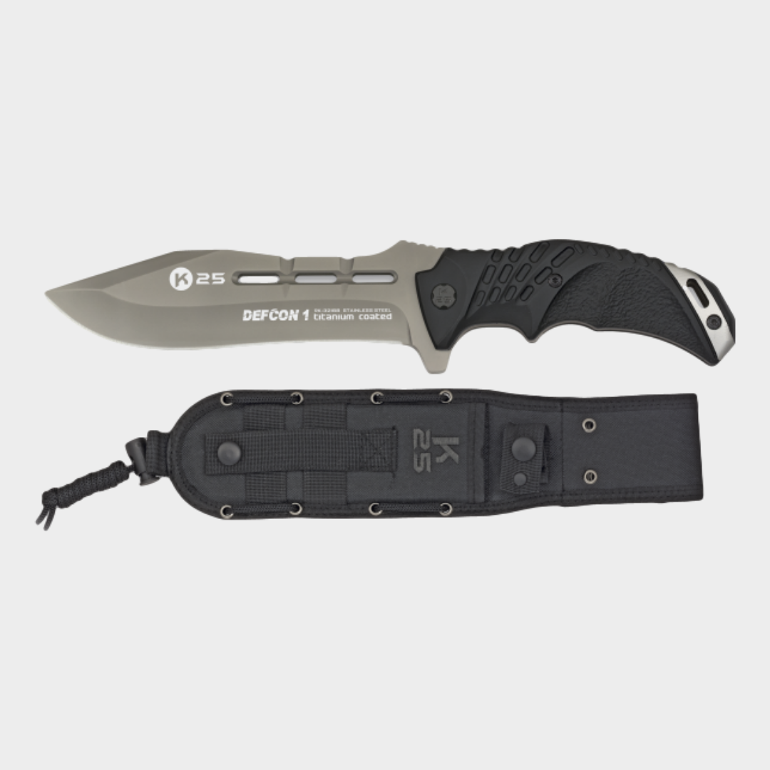 Faca K25 Black Line Outdoor › Navalhas 57,50 € IVA incluído Partilhar Quantidade Comprar Contactar Descrição: Copyright (c)Desenhado em EspanhaMarca: K25Modelo: DEFCON 1Identificador: SFLLâmina: aço inoxidável (banhado em titânio)Tamanho da lâmina: 15 cmEspessura da lâmina: 5 mmTamanho total: 27,7 cmBolsa de nylon Marca K25