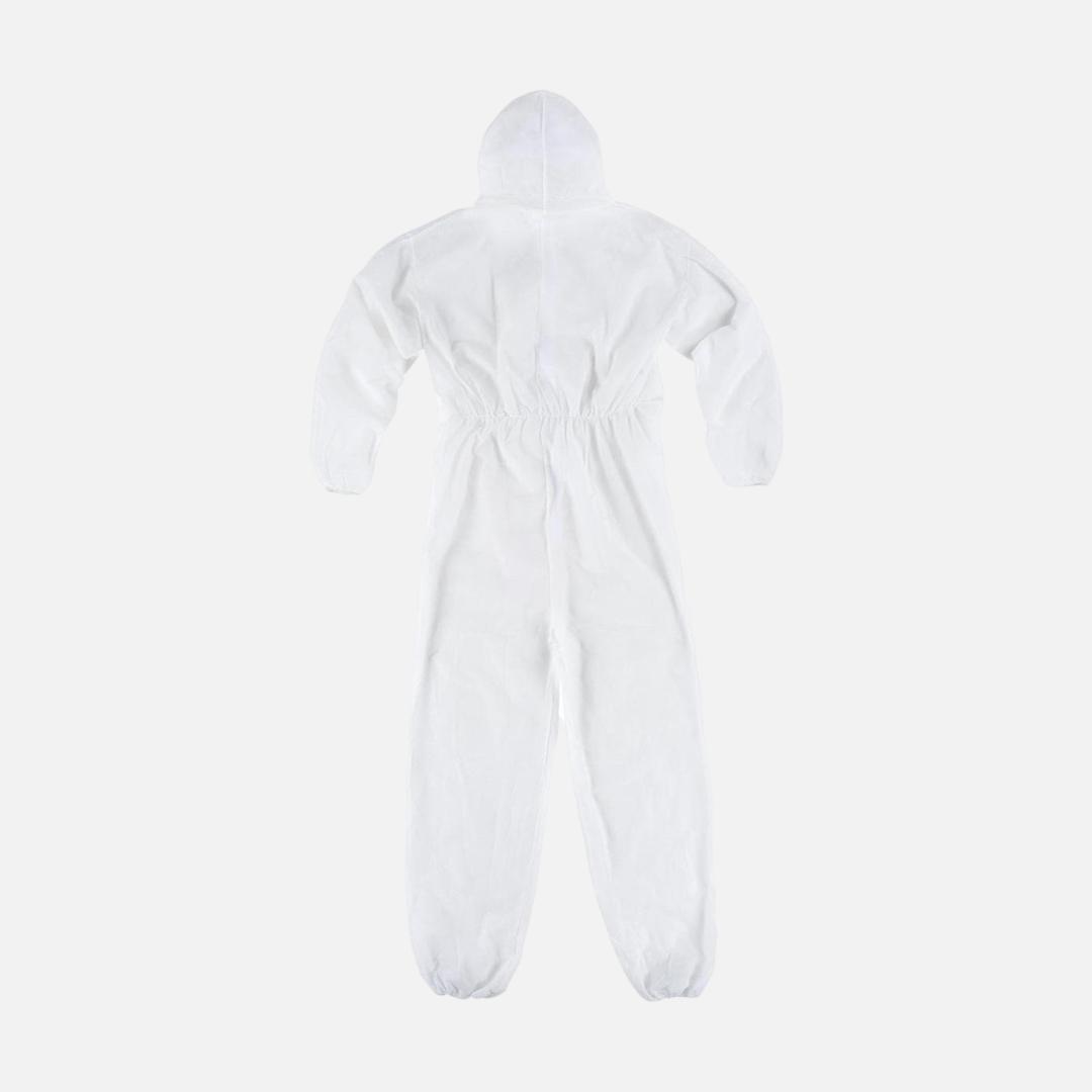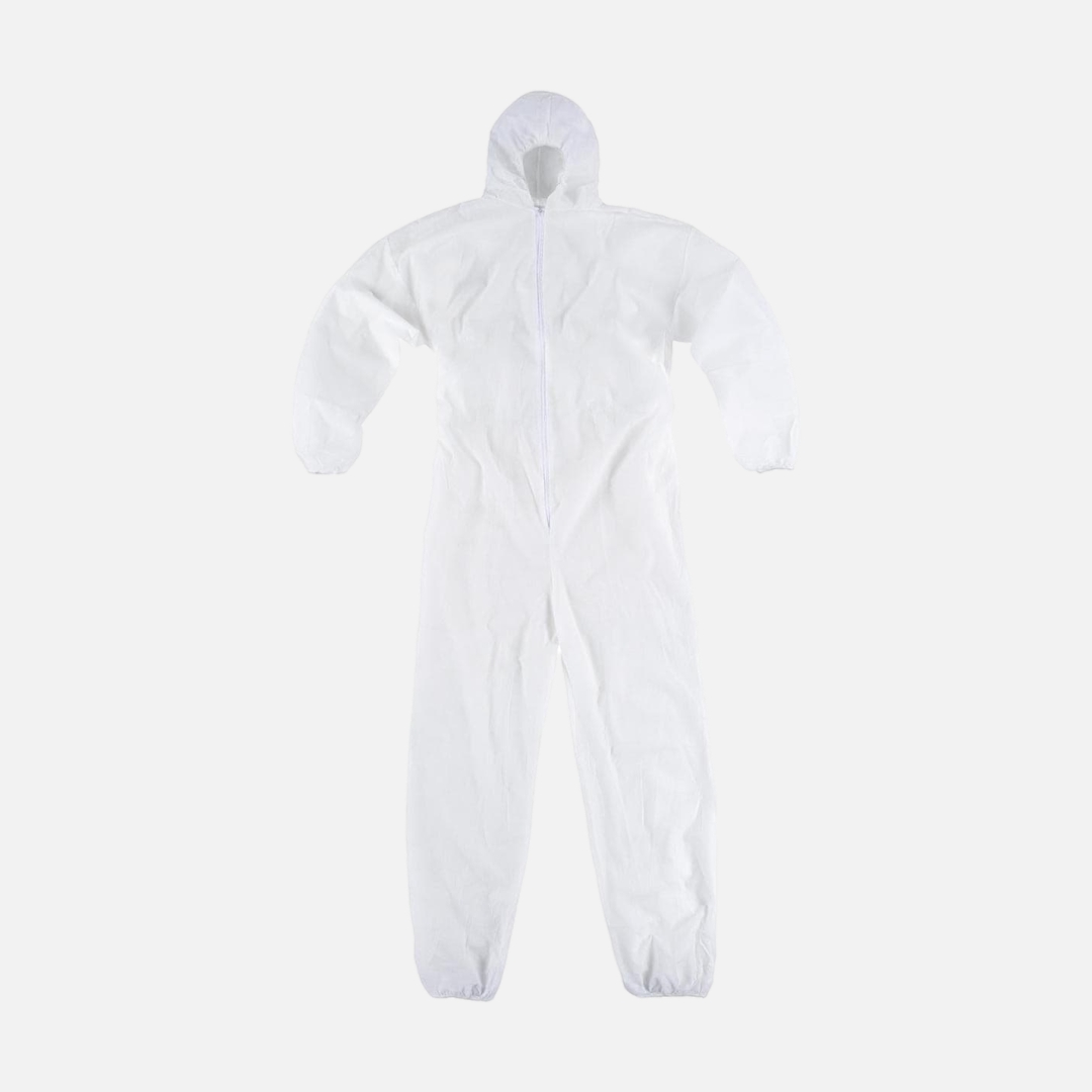 Fato-macaco descartável com capuz. Goma elástica em punhos e tornozelos. Cremalheira central. Fabricado em tecido não tecido de polipropileno. Oferece uma grande gama de protecção contra as partículas secas não perigosas, respingas de água limitadas e também frente ás impurezas. É ligeiro, transpirável e económico. Altamente funcional e confortável.