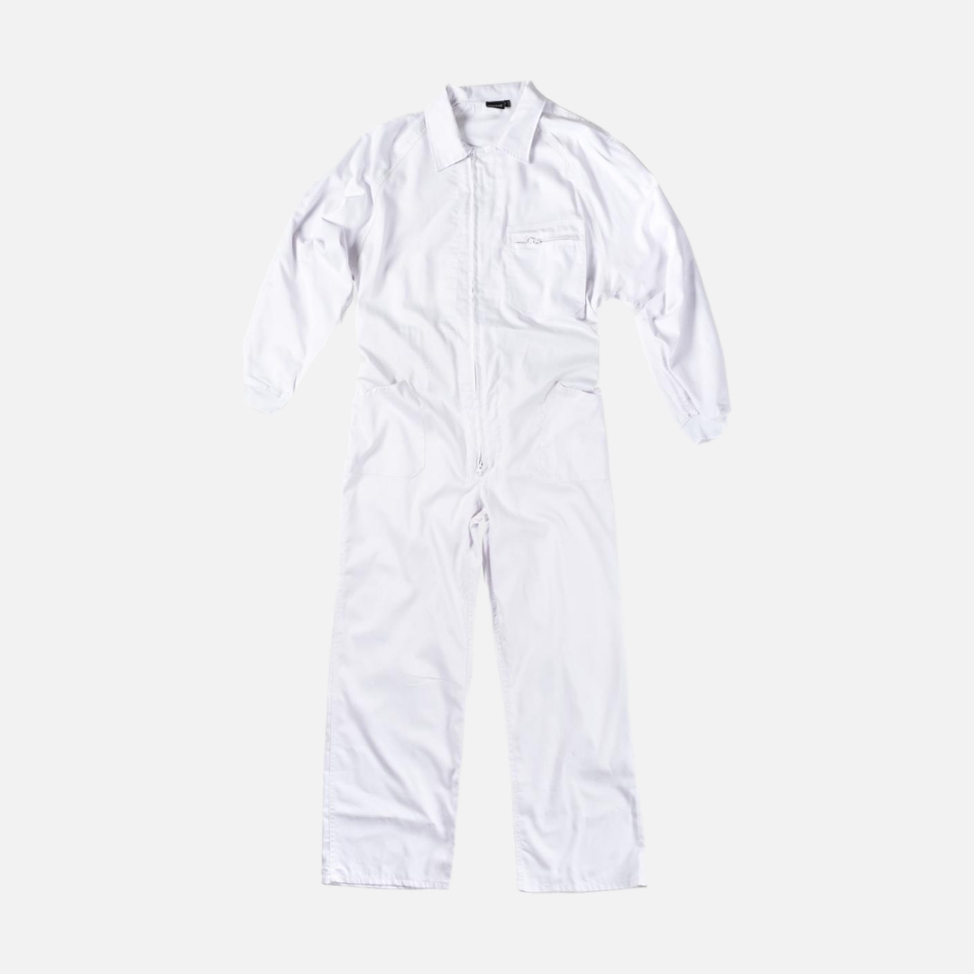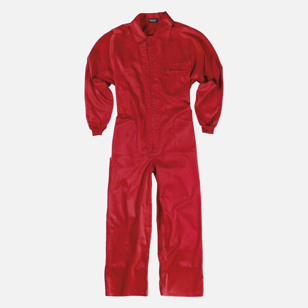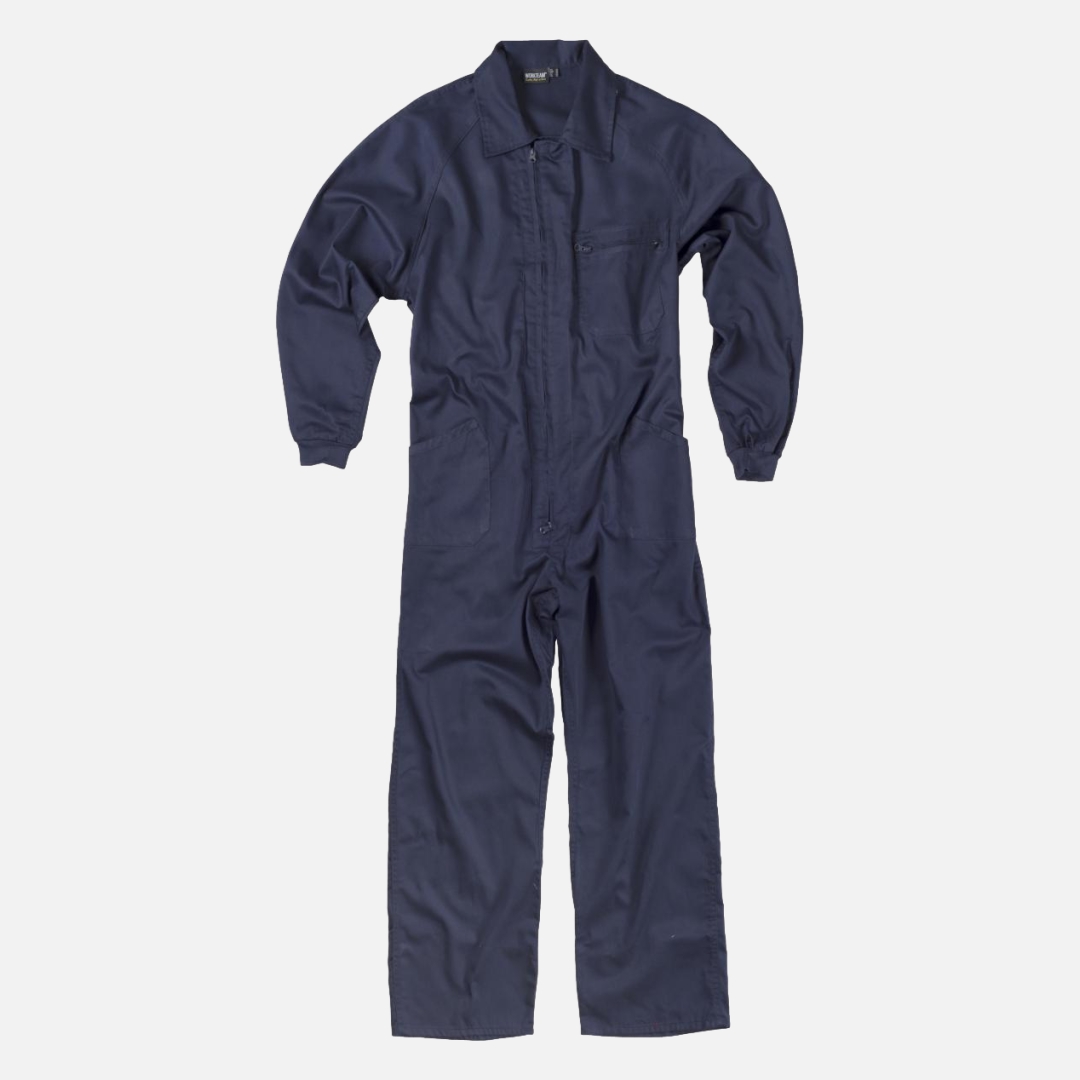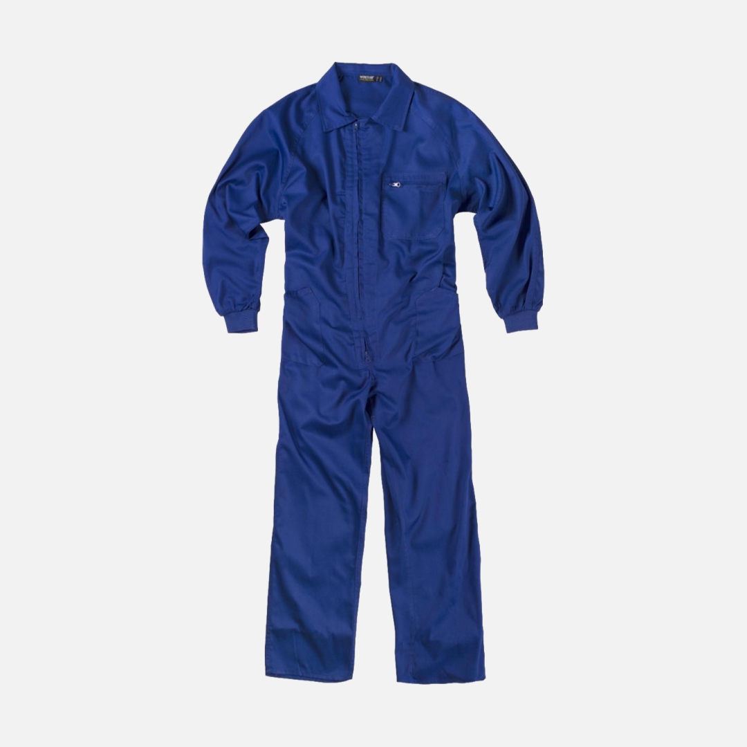 Fato macaco de estilo italiano. Gola tipo camiseiro e fecho de correr de nylon com puxador duplo.