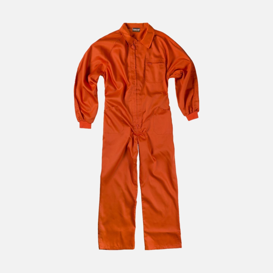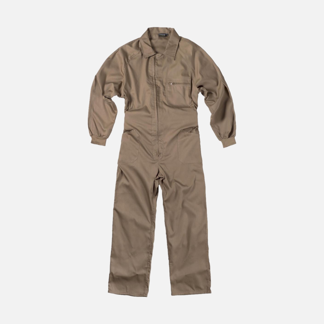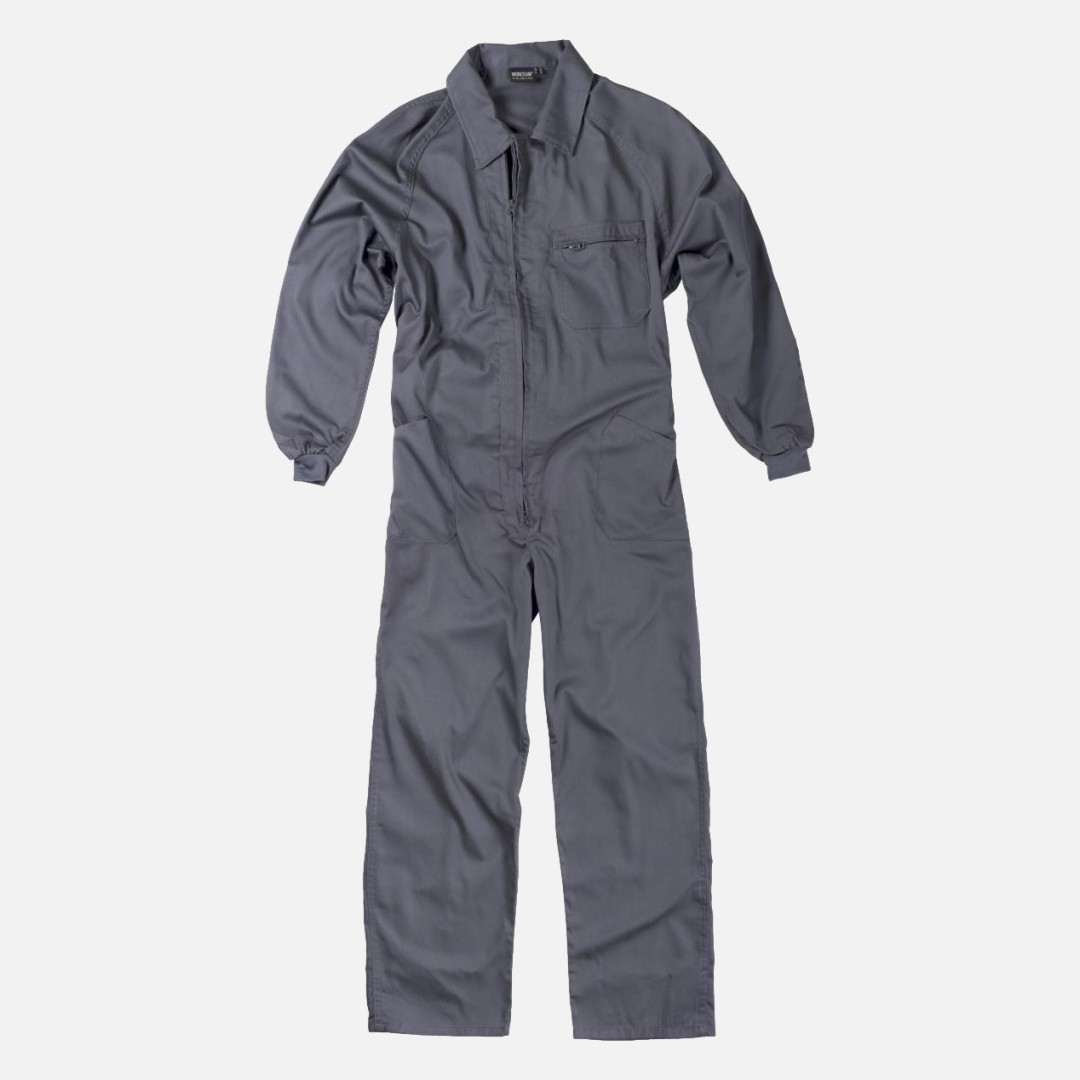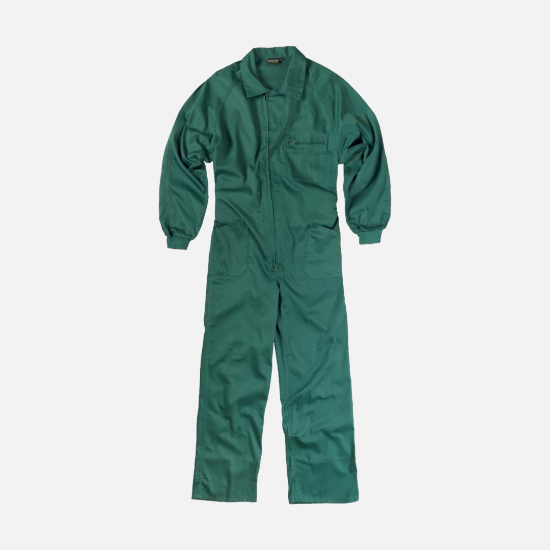Fato macaco de estilo italiano. Gola tipo camiseiro e fecho de correr de nylon com puxador duplo.