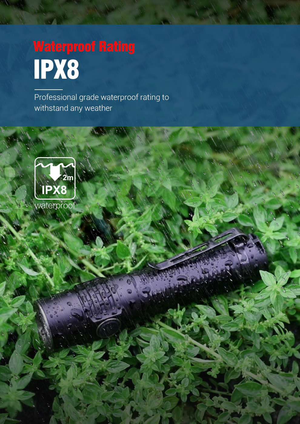 4.75in body length, even 15% smaller than ordinary 18650 flashlights, G15 can easily pack hidden in your pocket. 5-ounce weight body(Include battery), carry without feeling