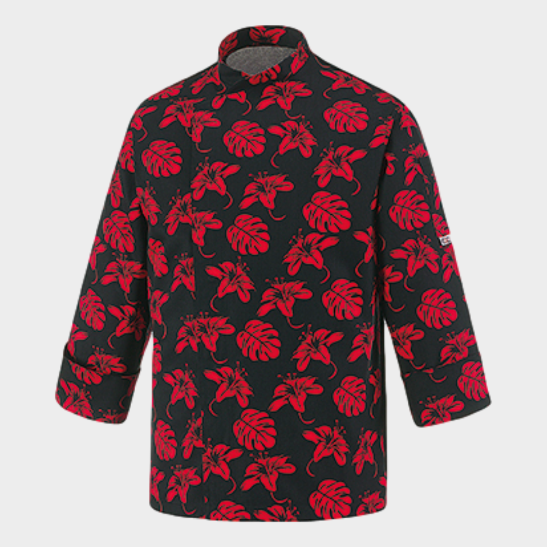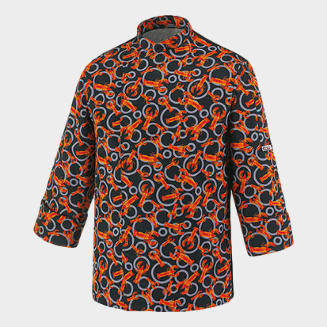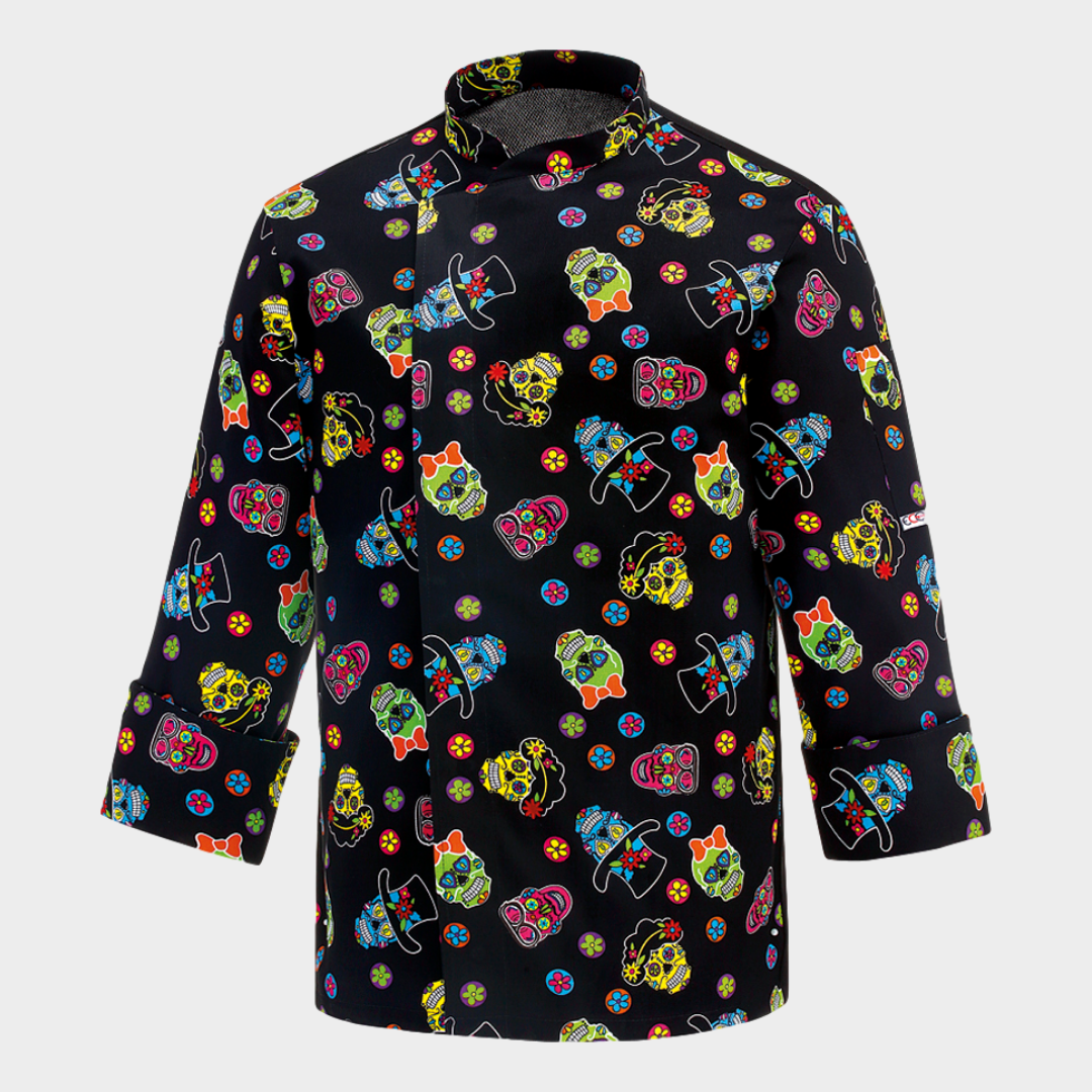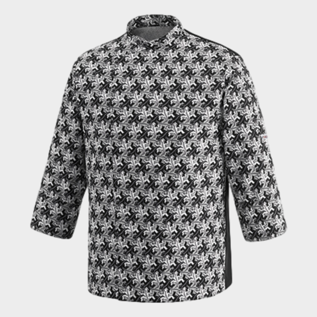 Jaleca de homem com diversos padrões, botões "escondidos" e manga comprida. Botões sem contacto com a pele. Com tecnologia Air Plus transformando assim a jaleca num tecido leve e bastante respirável.