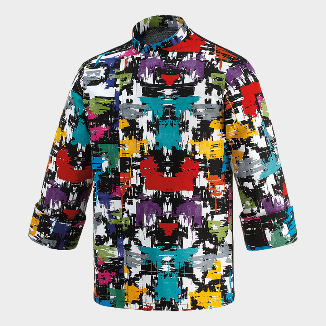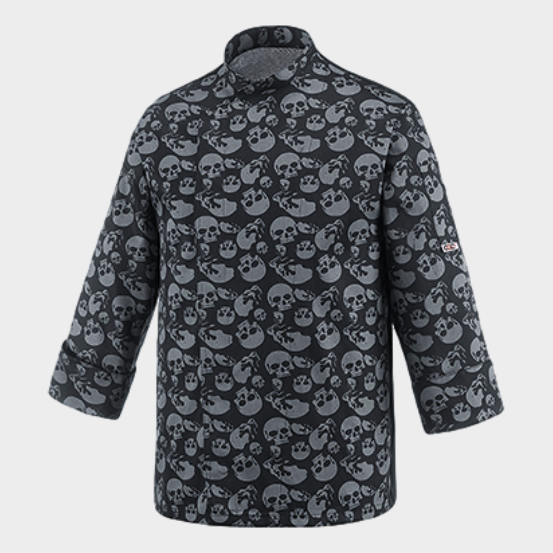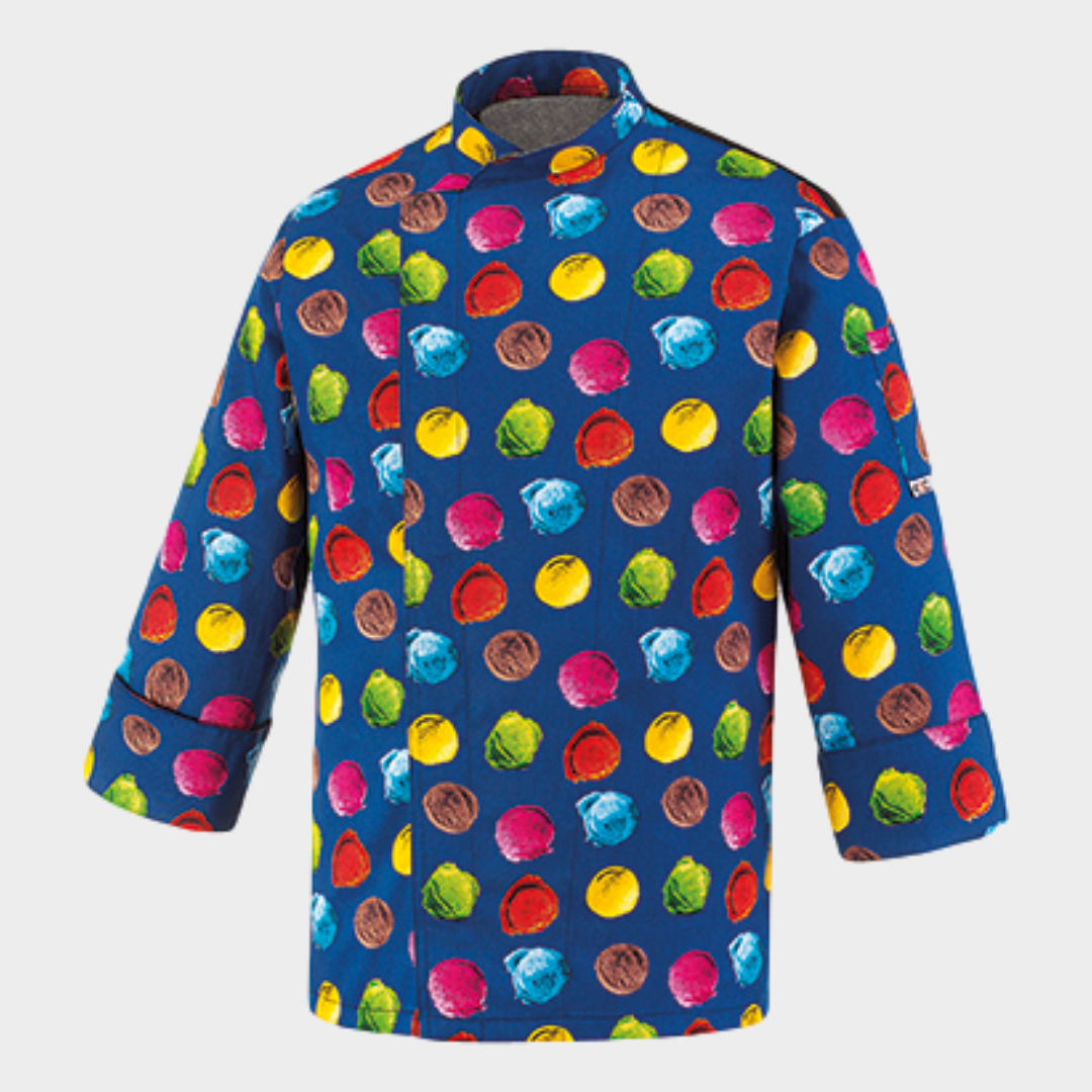 Jaleca de homem com diversos padrões, botões "escondidos" e manga comprida. Botões sem contacto com a pele. Com tecnologia Air Plus transformando assim a jaleca num tecido leve e bastante respirável.
