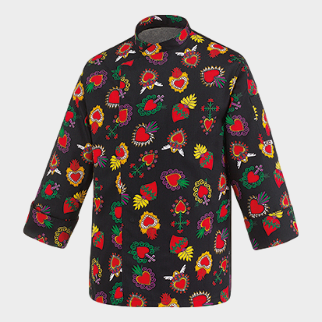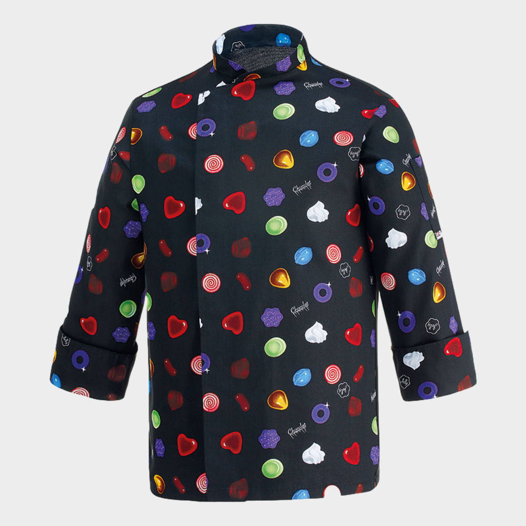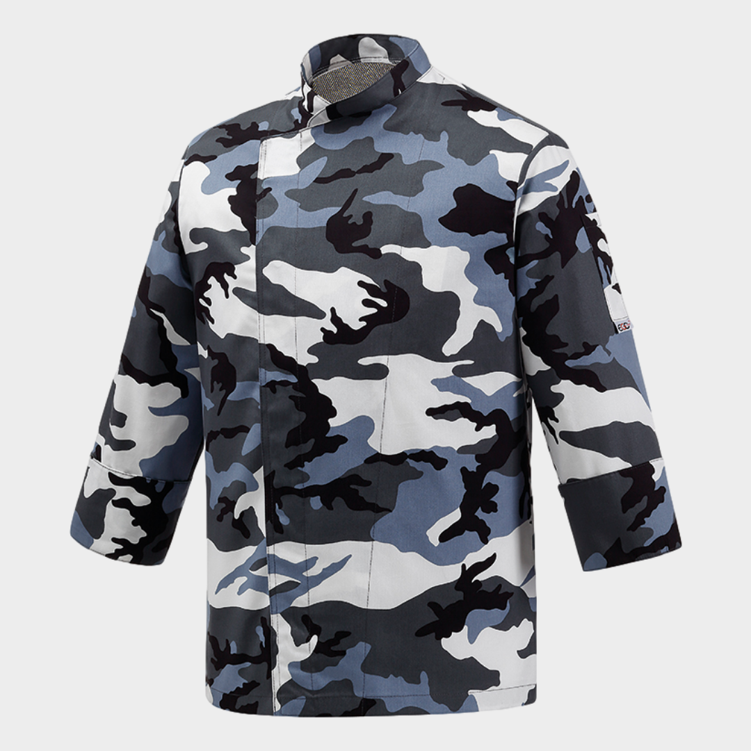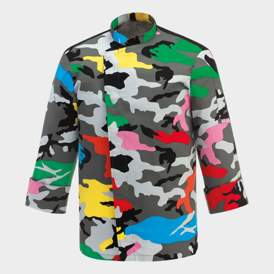 Jaleca de homem com diversos padrões, botões "escondidos" e manga comprida. Botões sem contacto com a pele. Com tecnologia Air Plus transformando assim a jaleca num tecido leve e bastante respirável.