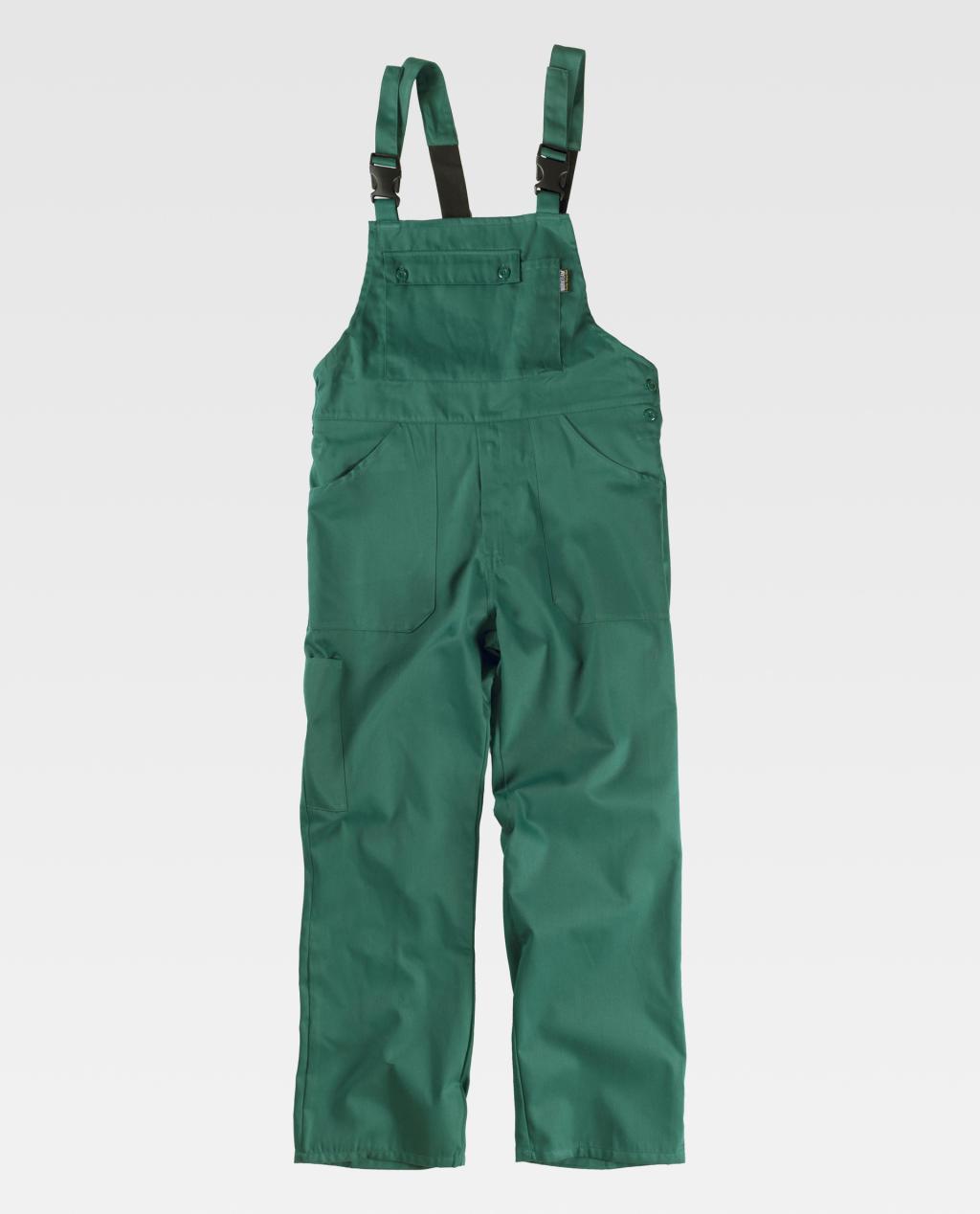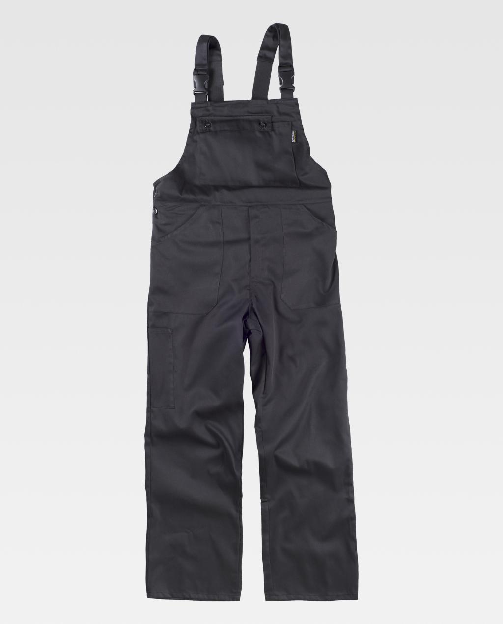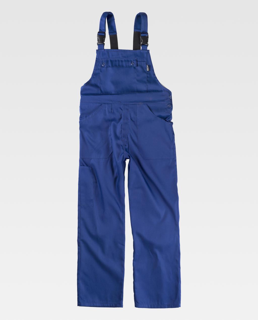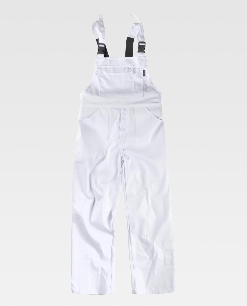 Jardineira com meias costas cobertas. Suspensórios com elástico e fivelas automáticas.