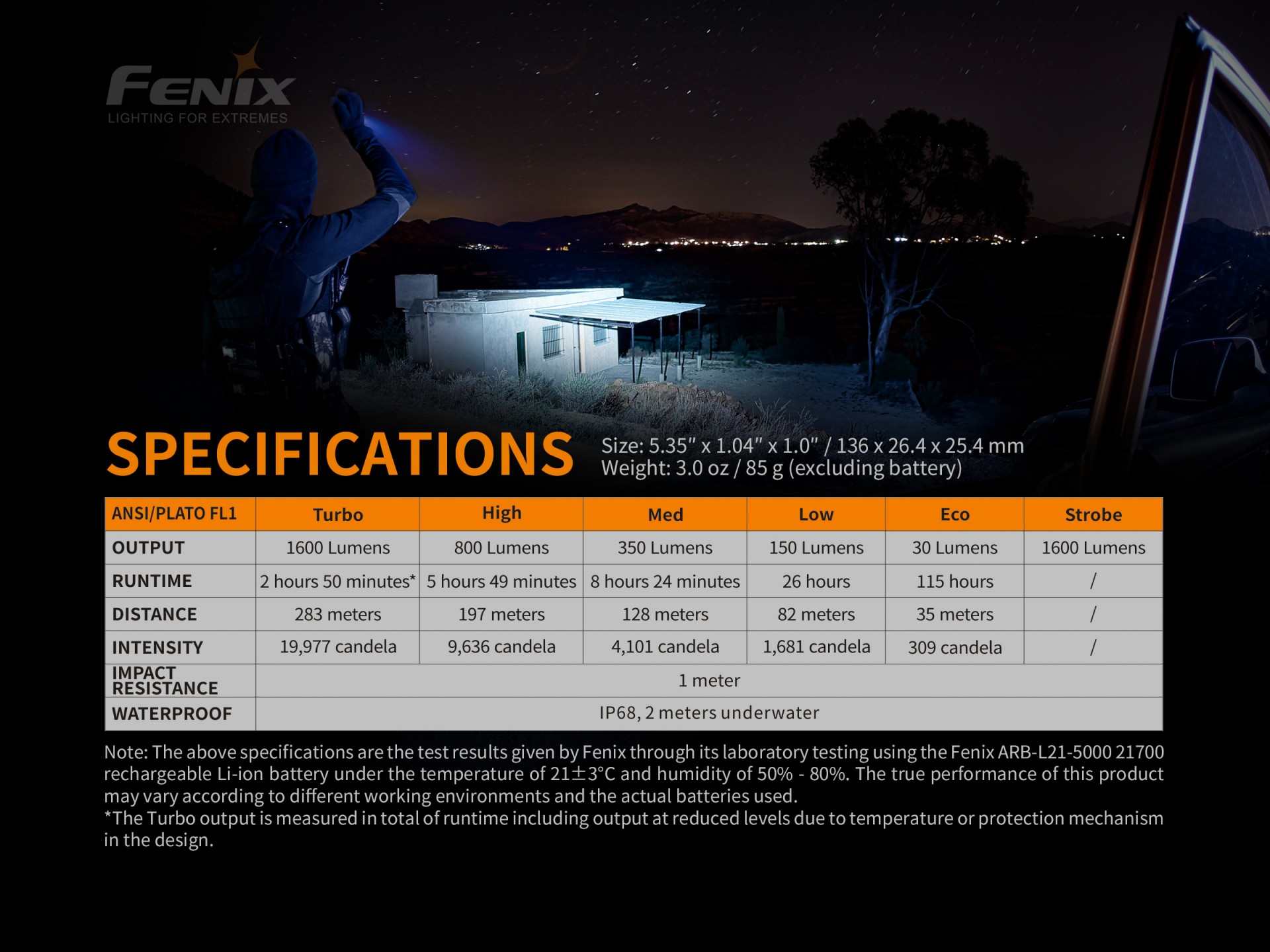 *Test results given by fenix with battery ARB-L21 5000