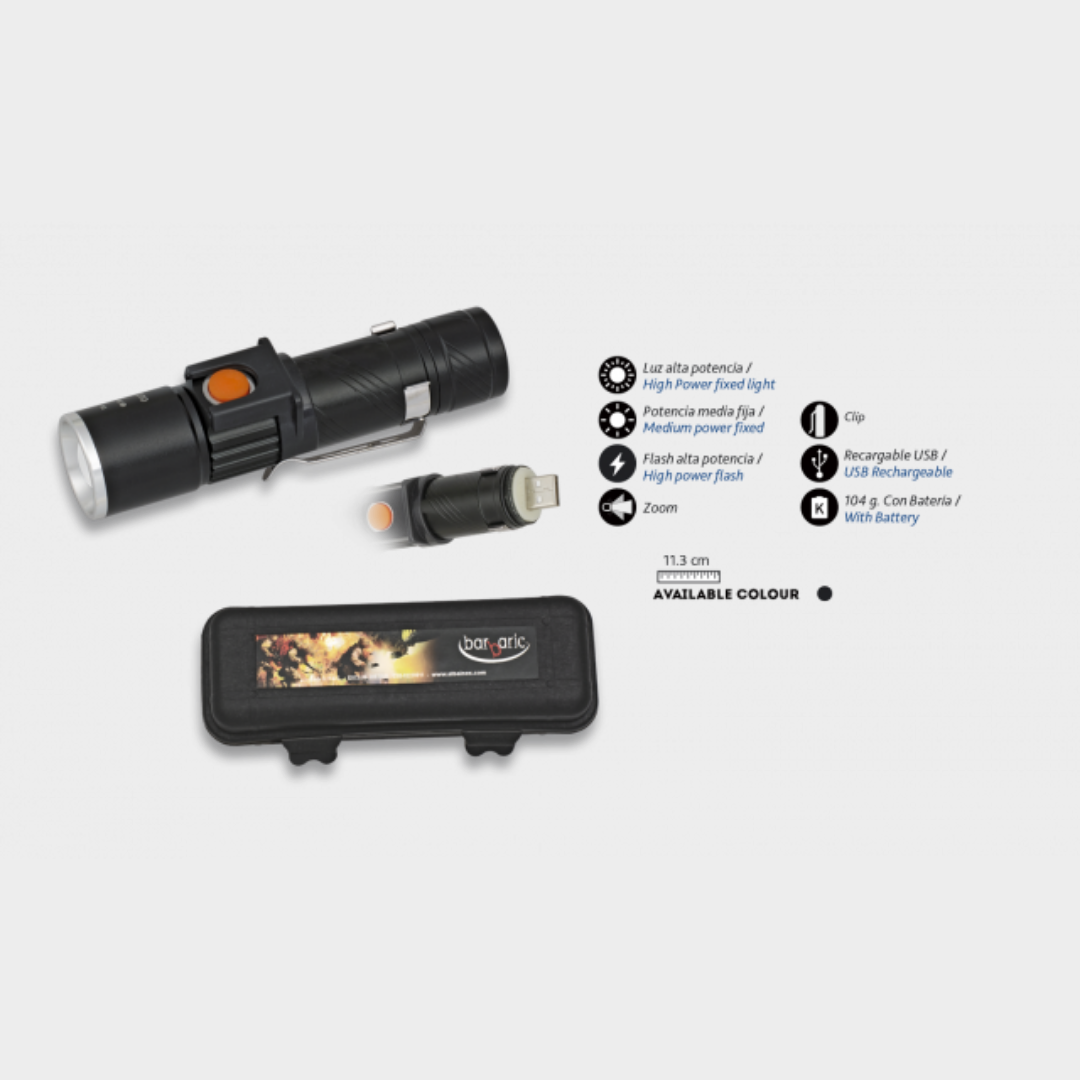 Lanterna recarregável com entrada USB para facilitar o carregamento.