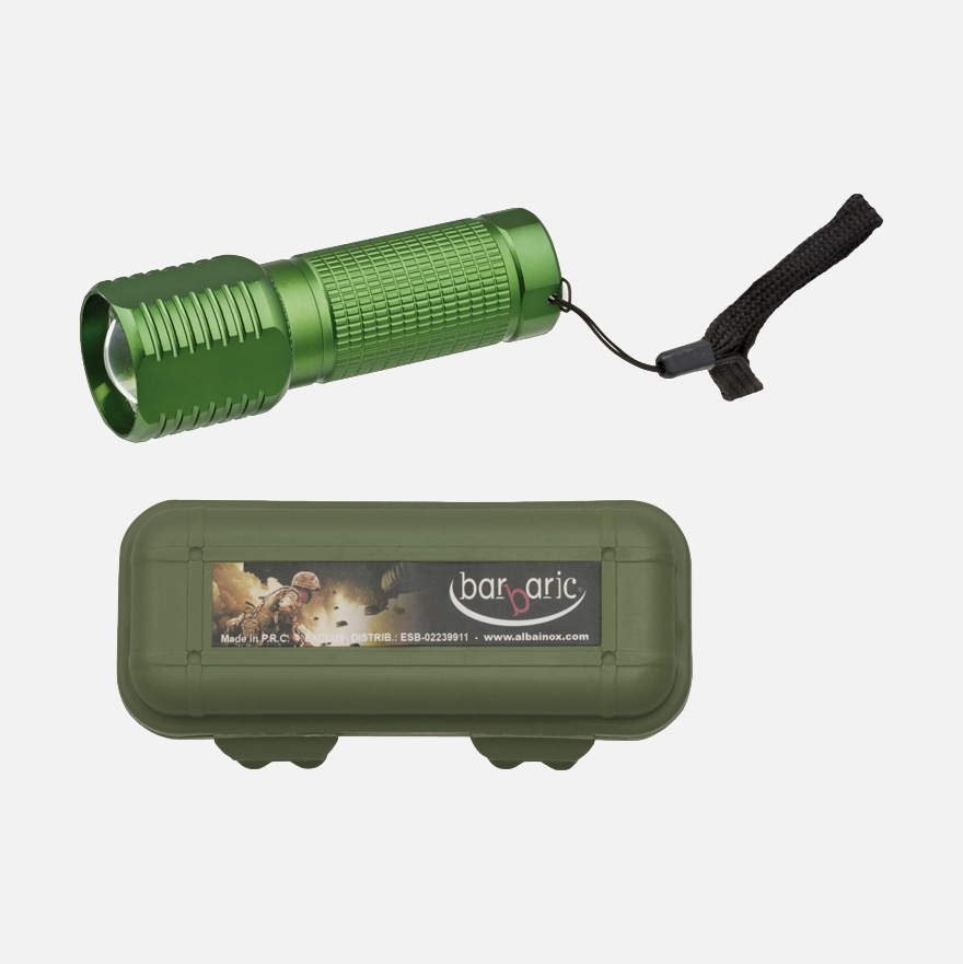 Lanterna Verde pequena com 100 lumens. Versátil e resistente.