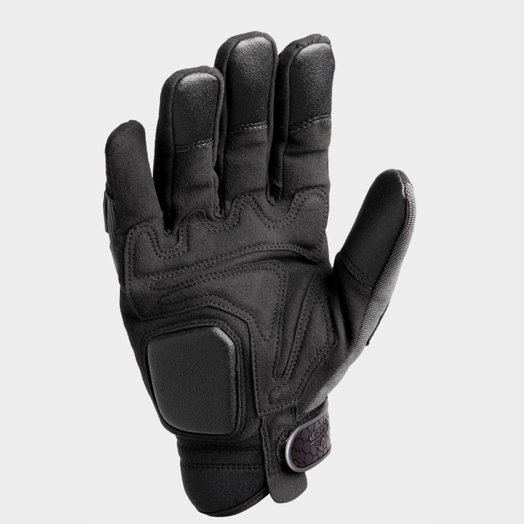 As luvas IHD de alto impacto são projetadas para um uso extremo em serviços pesados. As inserções de gel na zona de impacto protegem a mão contra impactos suaves e abrasão. A parte da junta é reforçada com borracha para aumentar a resistência ao impacto. O material antiderrapante na palma da mão e as pontas dos dedos endurecidas facilitam o manuseio e as operações pesadas de armas.