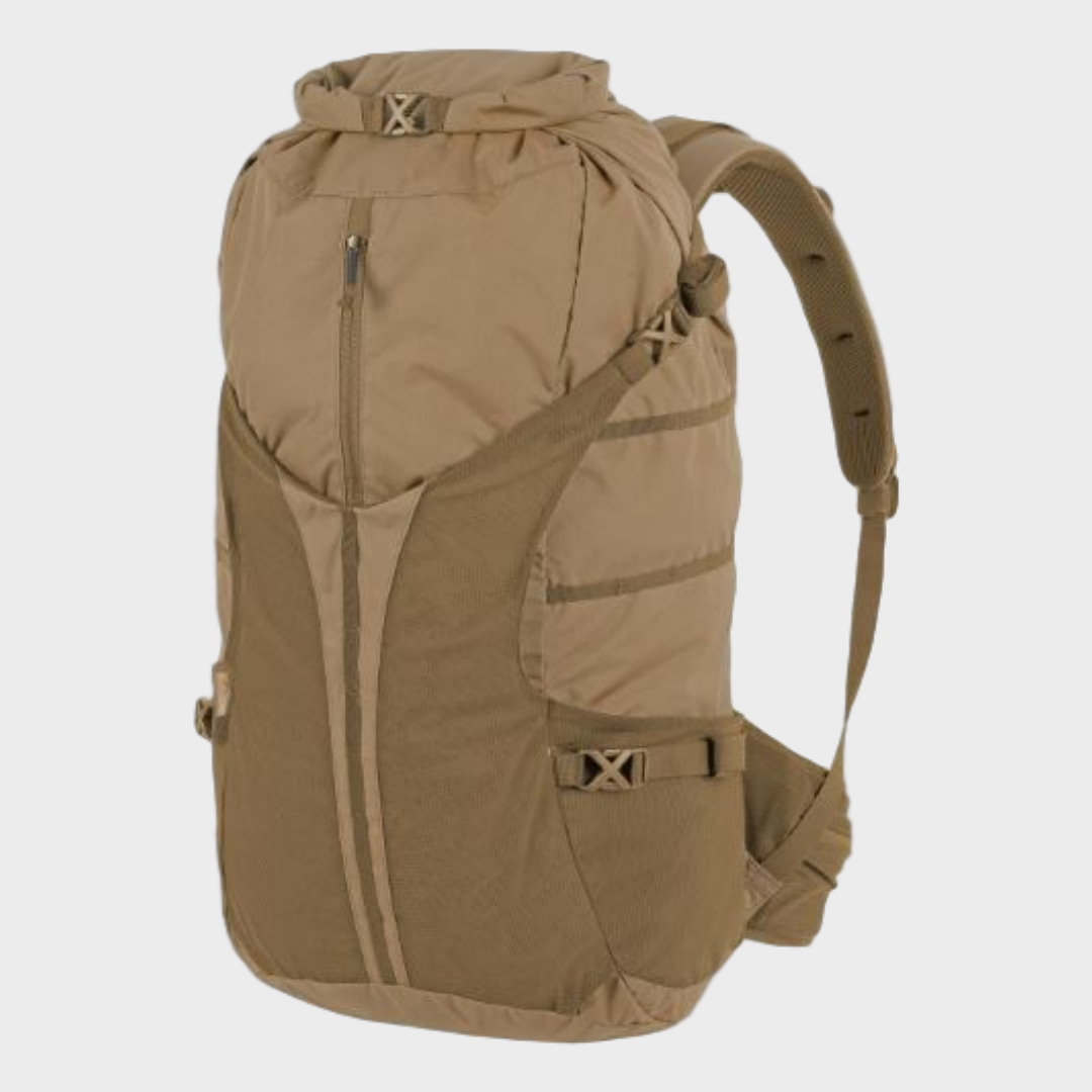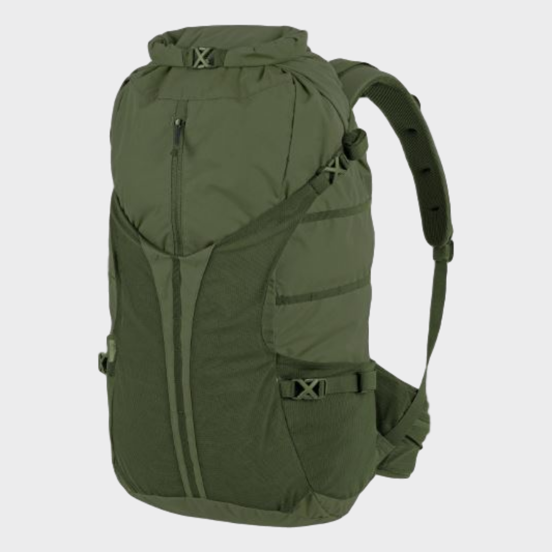 SUMMIT é a resposta para todas as necessidades de caminhadas modernas. Esta mochila é uma combinação de tecidos leves e duráveis com construção confortável e empacotável. Foram retiradas todas as adições desnecessárias que teriam influência negativa no peso. O compartimento principal espaçoso possui dois pontos de acesso - um através do colarinho do rolltop e o segundo através do fecho frontal e vertical. A mochila possui dois bolsos de malha elástica nas laterais para garrafa de água, casacos pequenos, ou pode ser também usada para transportar capacetes ou até um casaco de inverno maior. O confortável cinto de quadril perfilado tem dois bolsos de malha comfecho. Além disso, graças às correias MOLLE Lite de 10 mm de largura nas laterais, pode anexar bolsas maiores compatíveis com MOLLE / PALS.