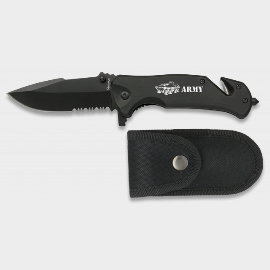 Navalha Preta Segurança SKU: 19800 Outdoor › Navalhas 15,00 € IVA incluído Partilhar Personalização ARMY AirForce SWAT Liso Quantidade Comprar Contactar Descrição: Direitos autoraisDesenhado em EspanhaCabo: Alumínio - Revestido com BorrachaLâmina: aço inoxidável - revestido de pretoTamanho da lâmina: 9 cmEspessura da lâmina: 2,7 mmBolsa de nylon Marca K25
