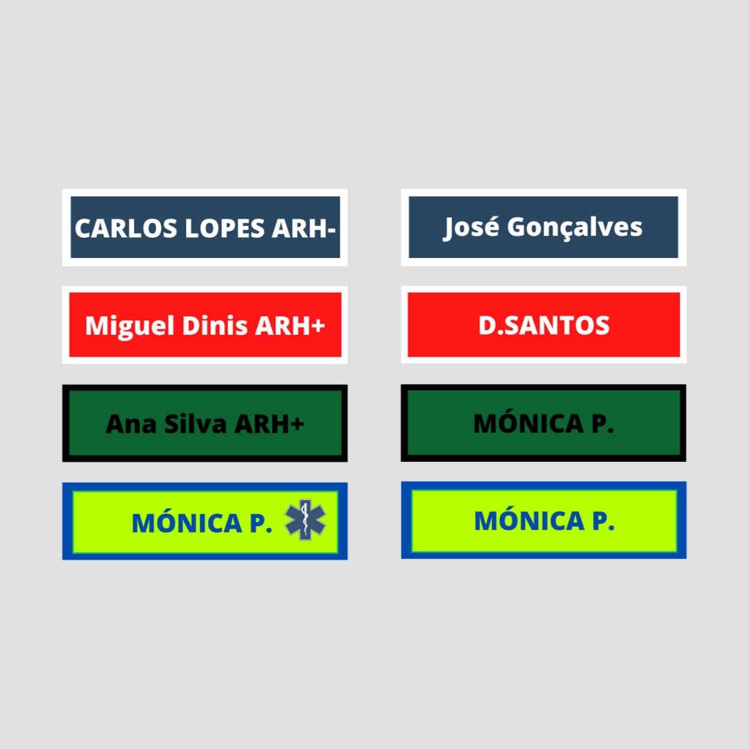 Nome bordado em vários tamanhos e cores. Nome para PSP, Policia Municipal, GNR, Bombeiros, INEM, Militar, etc...