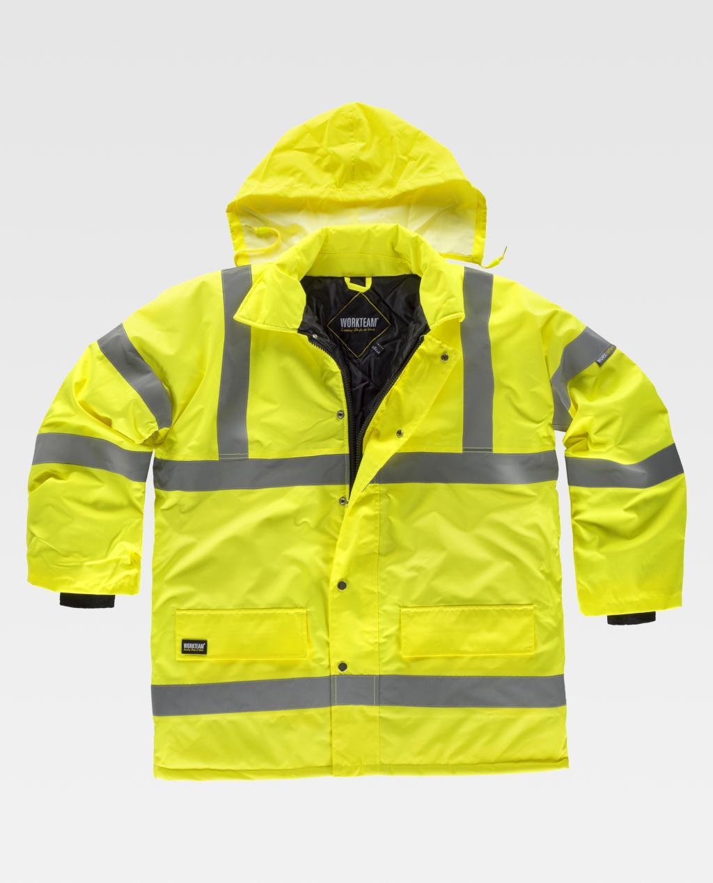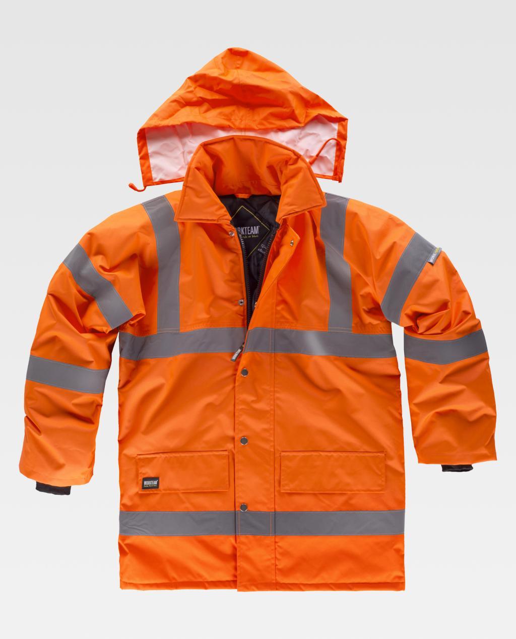 Parka acolchoada e impermeável em tecido Oxford, de alta visibilidade e com faixas refletoras.