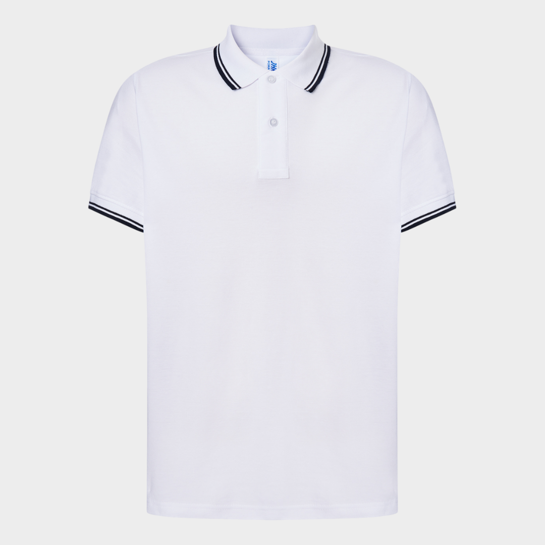 Polo piqué homen manga curta, 100% algodão. Ideal para bordar. Com contraste.